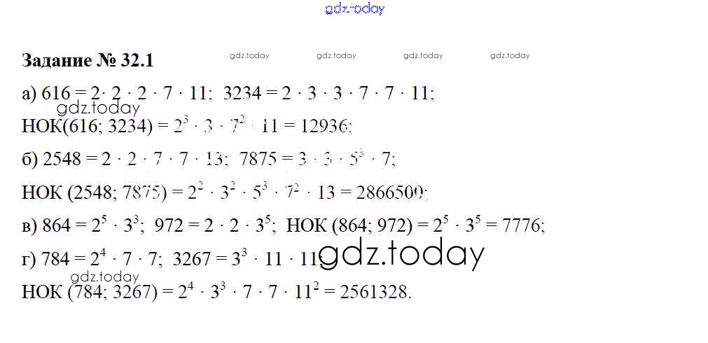 На страницах сайта gdz.today вы найдете учебный и вспомогательный материал, направленный на улучшения знаний школьной программы. ГДЗ - онлайн мир знаний Решение. §32. Взаимно простые числа. Признак делимости на произведение. Наименьшее общее кратное 1 Рабочей тетради по Математике для 6 класса Зубарева Мнемозина 2016