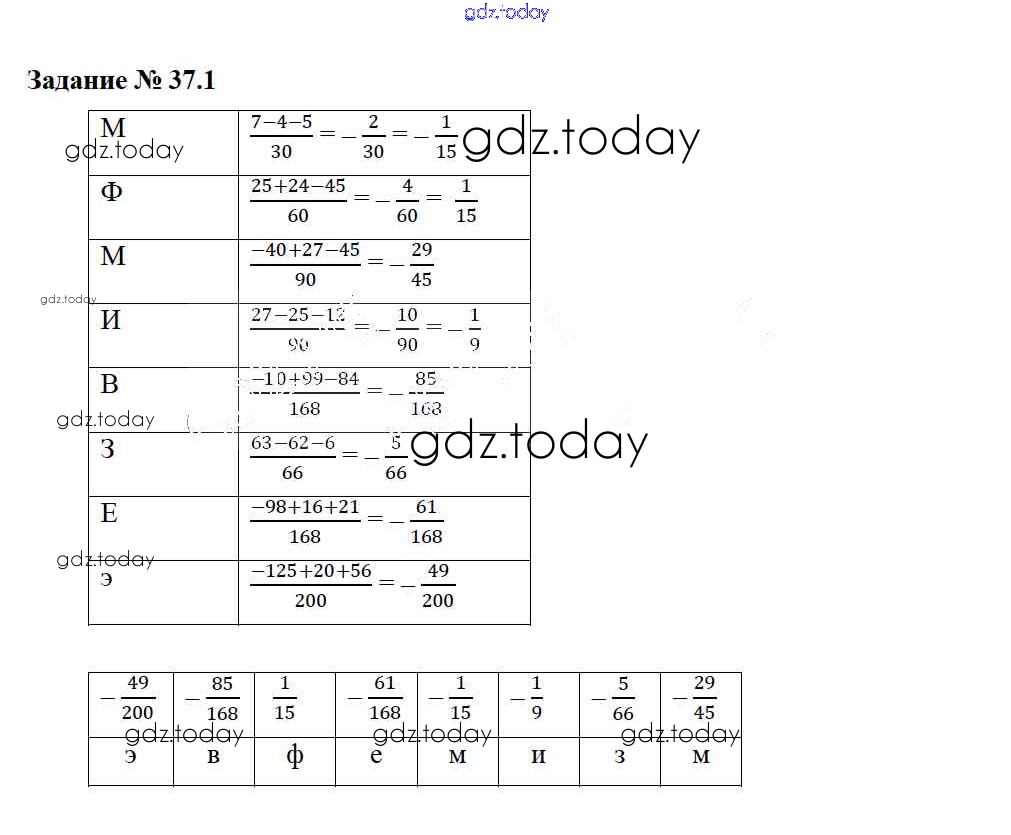 Ответы к Решение. §37. Разные задачи 1 Рабочей тетради по Математике для 6 класса Зубарева Мнемозина 2016