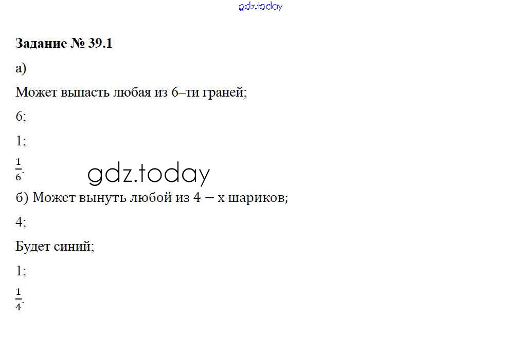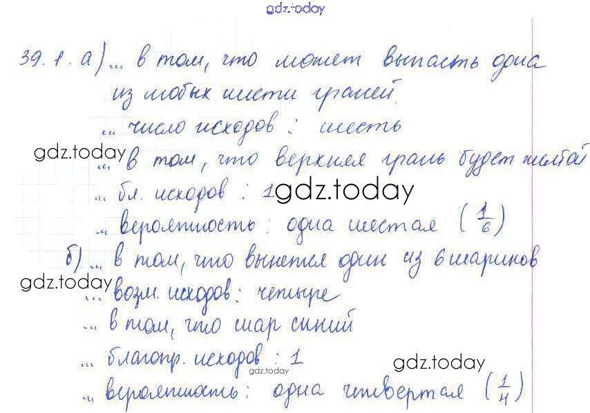 На страницах сайта gdz.today вы найдете учебный и вспомогательный материал, направленный на улучшения знаний школьной программы. ГДЗ - онлайн мир знаний Решение. §39. Первое знакомство с подсчетом вероятности 1 Рабочей тетради по Математике для 6 класса Зубарева Мнемозина 2016