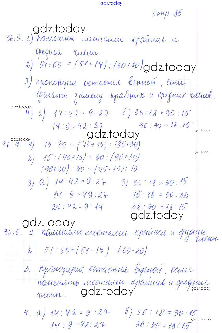 Ответы к Решение к части 1. Страницы 85 Рабочей тетради по Математике для 6 класса Зубарева Мнемозина 2016
