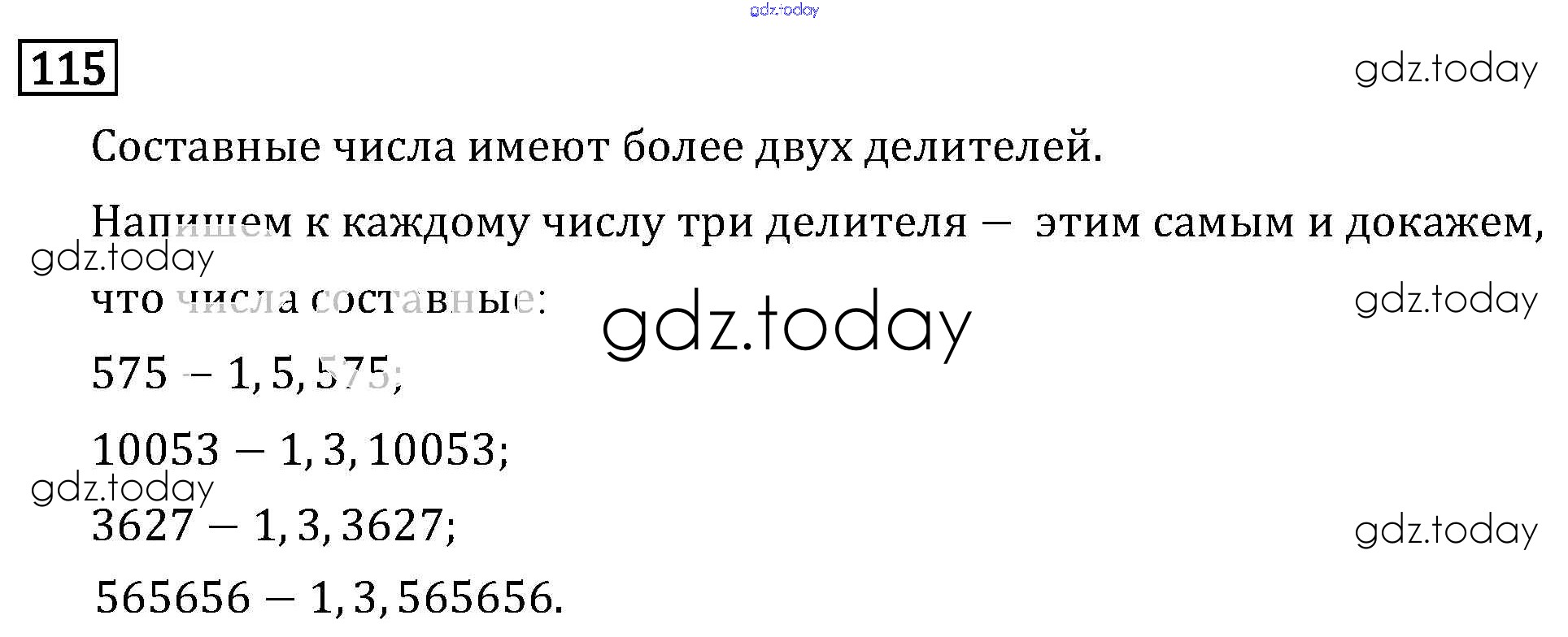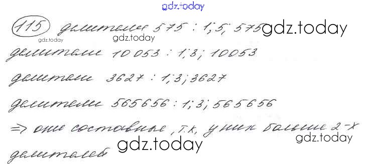 На страницах сайта gdz.today вы найдете учебный и вспомогательный материал, направленный на улучшения знаний школьной программы. ГДЗ - онлайн мир знаний §1. Делимость чисел Решение к главе 1 115 Учебнику по Математике для 6 класса Виленкин, Жохов Мнемозина 2014