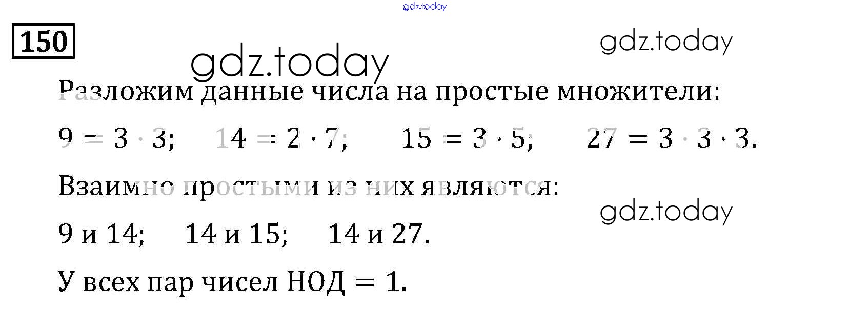 Ответы к §1. Делимость чисел Решение к главе 1 150 Учебнику по Математике для 6 класса Виленкин, Жохов Мнемозина 2014