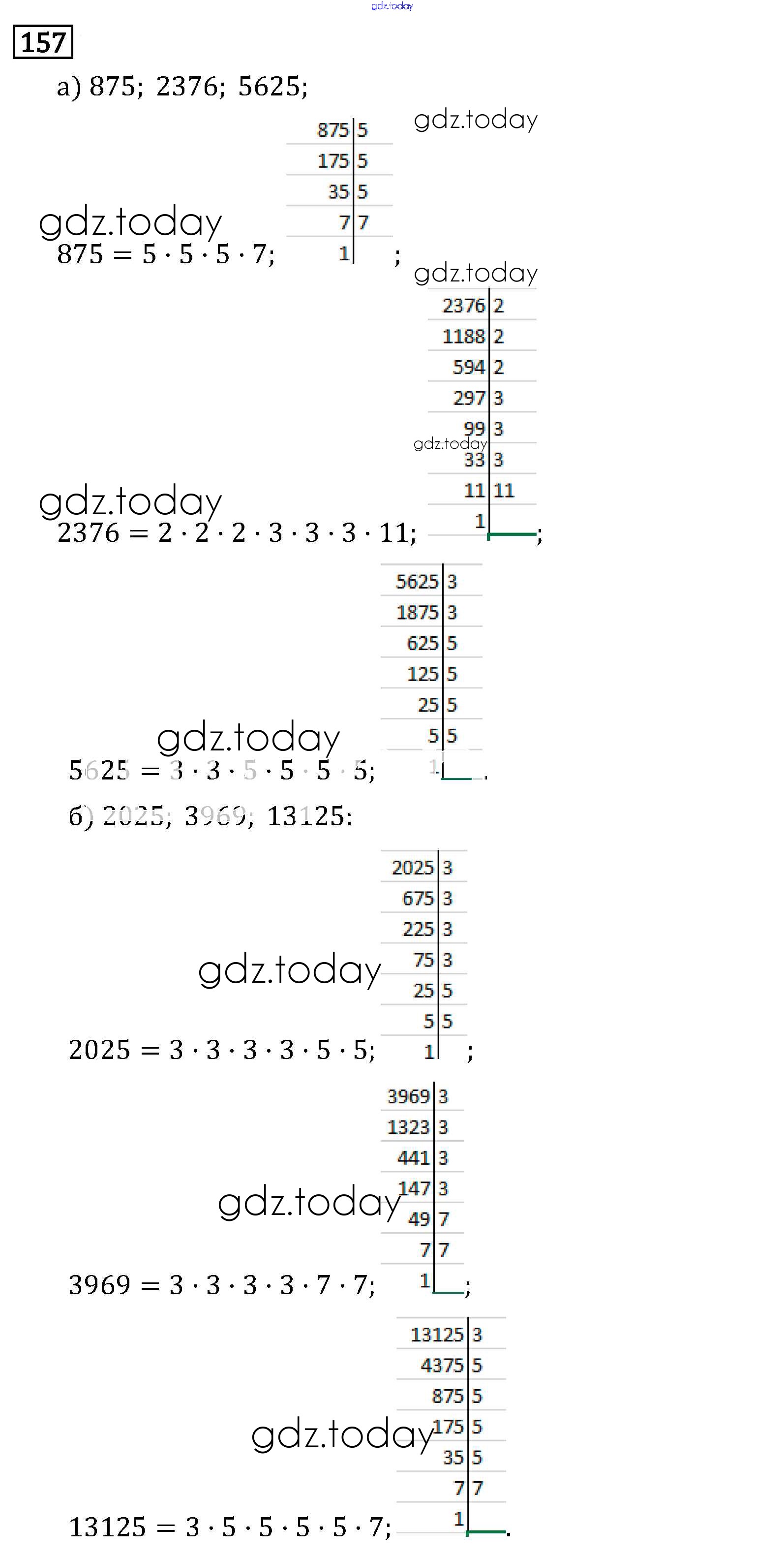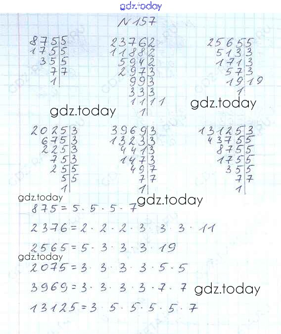 На страницах сайта gdz.today вы найдете учебный и вспомогательный материал, направленный на улучшения знаний школьной программы. ГДЗ - онлайн мир знаний §1. Делимость чисел Решение к главе 1 157 Учебнику по Математике для 6 класса Виленкин, Жохов Мнемозина 2014