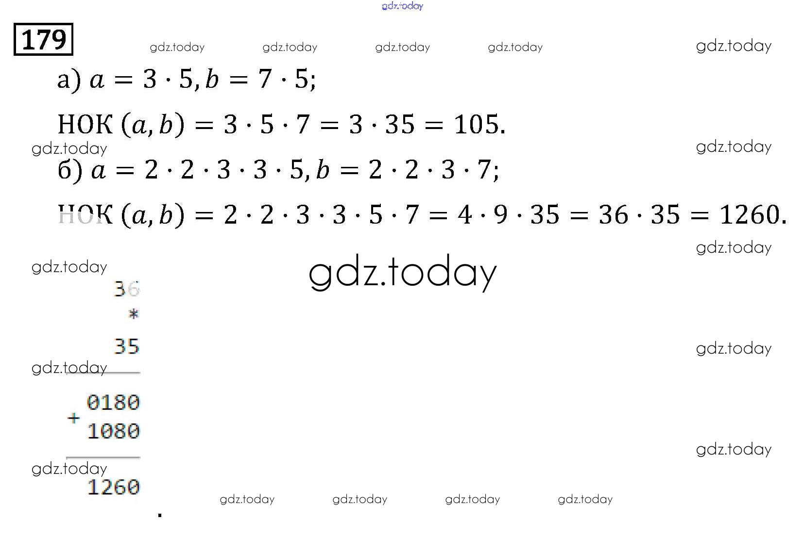 На страницах сайта gdz.today вы найдете учебный и вспомогательный материал, направленный на улучшения знаний школьной программы. ГДЗ - онлайн мир знаний §1. Делимость чисел Решение к главе 1 179 Учебнику по Математике для 6 класса Виленкин, Жохов Мнемозина 2014