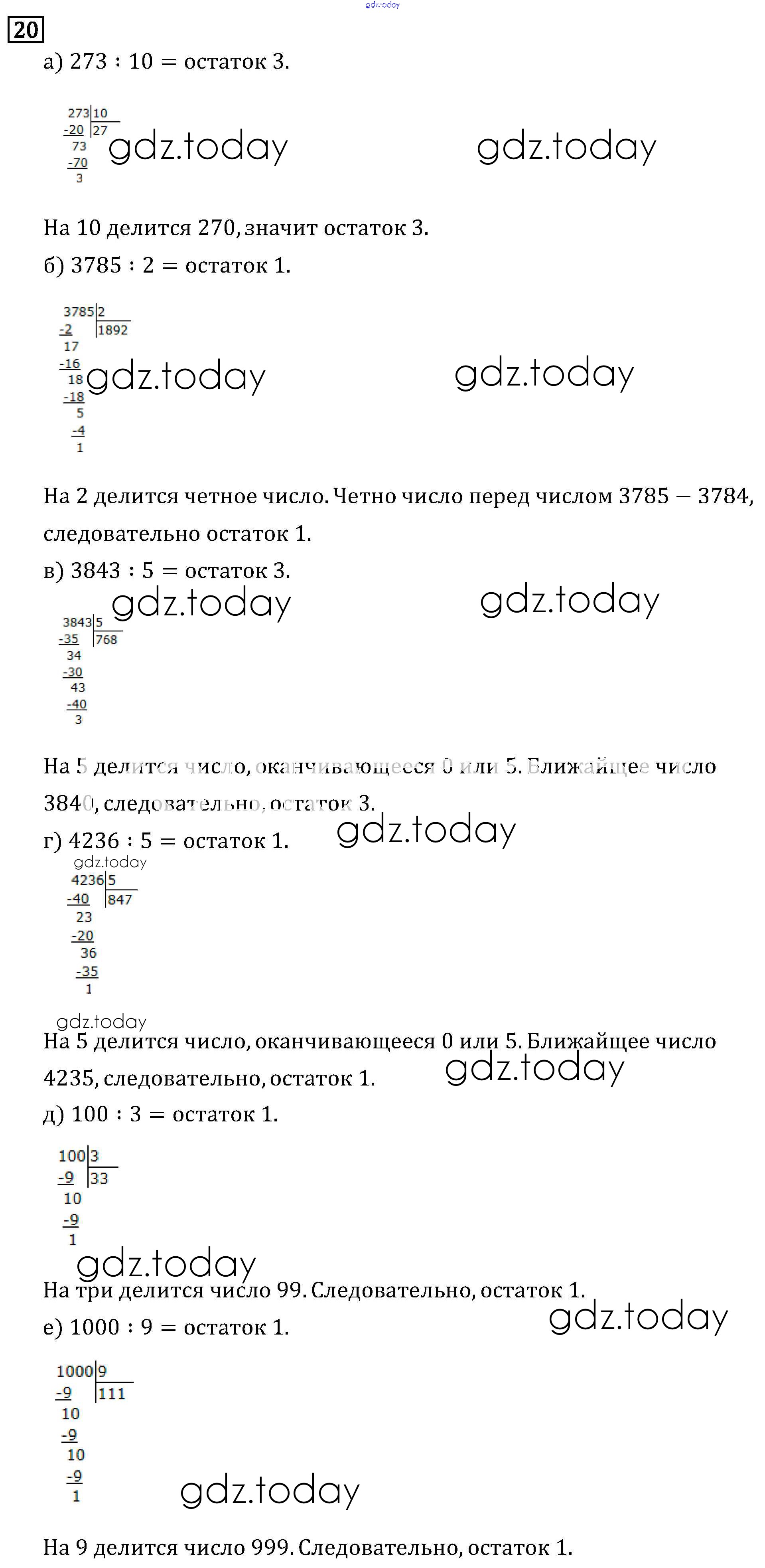 На страницах сайта gdz.today вы найдете учебный и вспомогательный материал, направленный на улучшения знаний школьной программы. ГДЗ - онлайн мир знаний §1. Делимость чисел Решение к главе 1 20 Учебнику по Математике для 6 класса Виленкин, Жохов Мнемозина 2014
