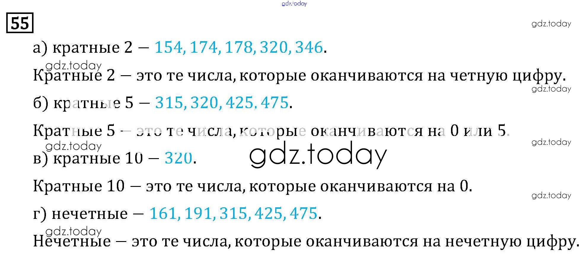 На страницах сайта gdz.today вы найдете учебный и вспомогательный материал, направленный на улучшения знаний школьной программы. ГДЗ - онлайн мир знаний §1. Делимость чисел Решение к главе 1 55 Учебнику по Математике для 6 класса Виленкин, Жохов Мнемозина 2014