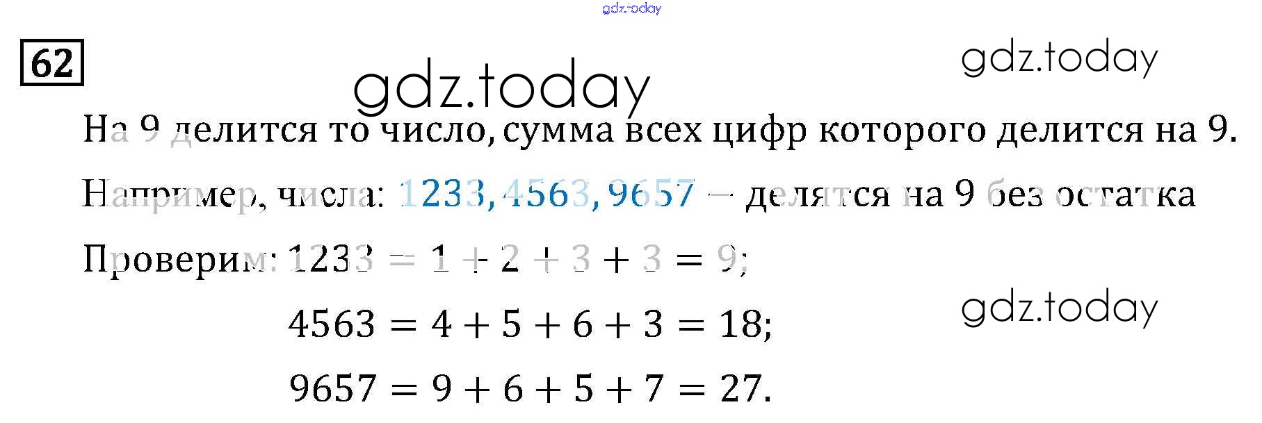 На страницах сайта gdz.today вы найдете учебный и вспомогательный материал, направленный на улучшения знаний школьной программы. ГДЗ - онлайн мир знаний §1. Делимость чисел Решение к главе 1 62 Учебнику по Математике для 6 класса Виленкин, Жохов Мнемозина 2014