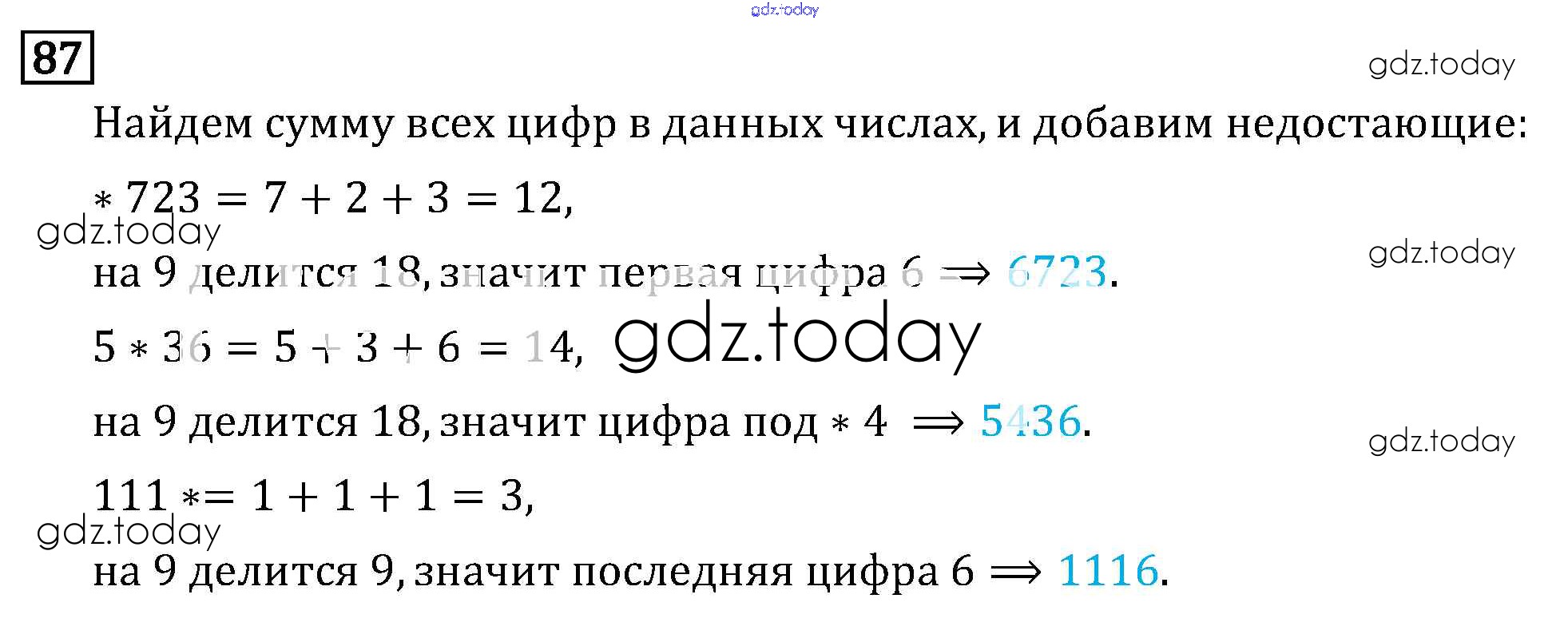 На страницах сайта gdz.today вы найдете учебный и вспомогательный материал, направленный на улучшения знаний школьной программы. ГДЗ - онлайн мир знаний §1. Делимость чисел Решение к главе 1 87 Учебнику по Математике для 6 класса Виленкин, Жохов Мнемозина 2014