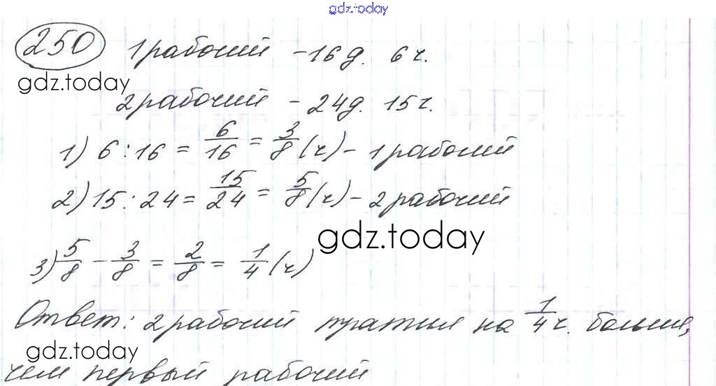 Ответы к §2. Сложение и вычитание дробей с разными знаменателями Решение к главе 1 250 Учебнику по Математике для 6 класса Виленкин, Жохов Мнемозина 2014