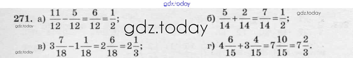 Ответы к §2. Сложение и вычитание дробей с разными знаменателями Решение к главе 1 271 Учебнику по Математике для 6 класса Виленкин, Жохов Мнемозина 2014