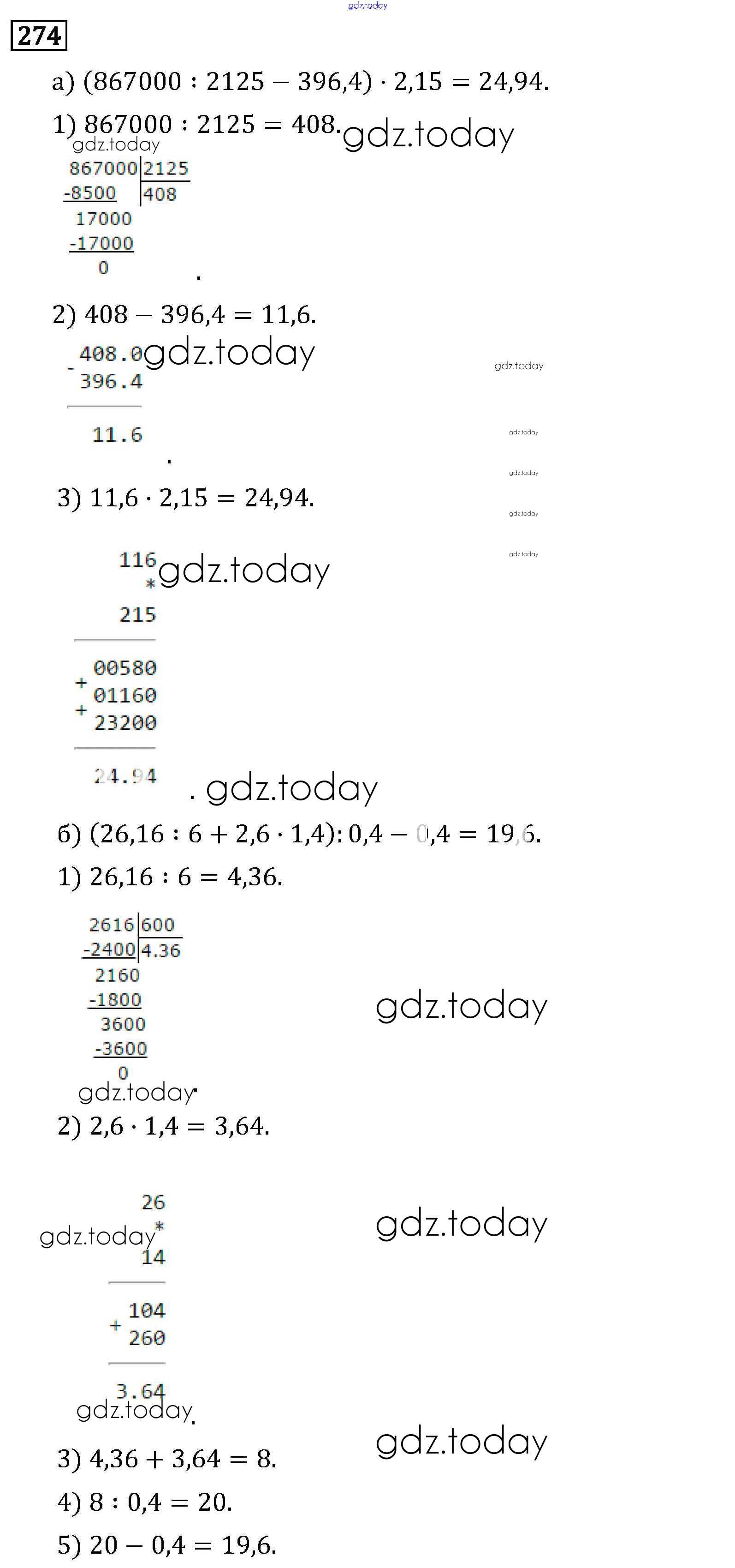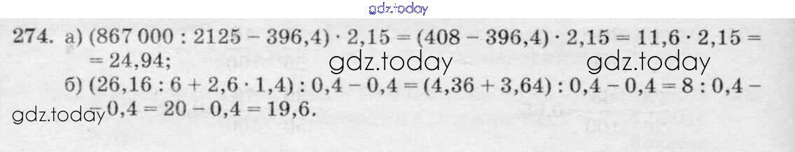 Ответы к §2. Сложение и вычитание дробей с разными знаменателями Решение к главе 1 274 Учебнику по Математике для 6 класса Виленкин, Жохов Мнемозина 2014