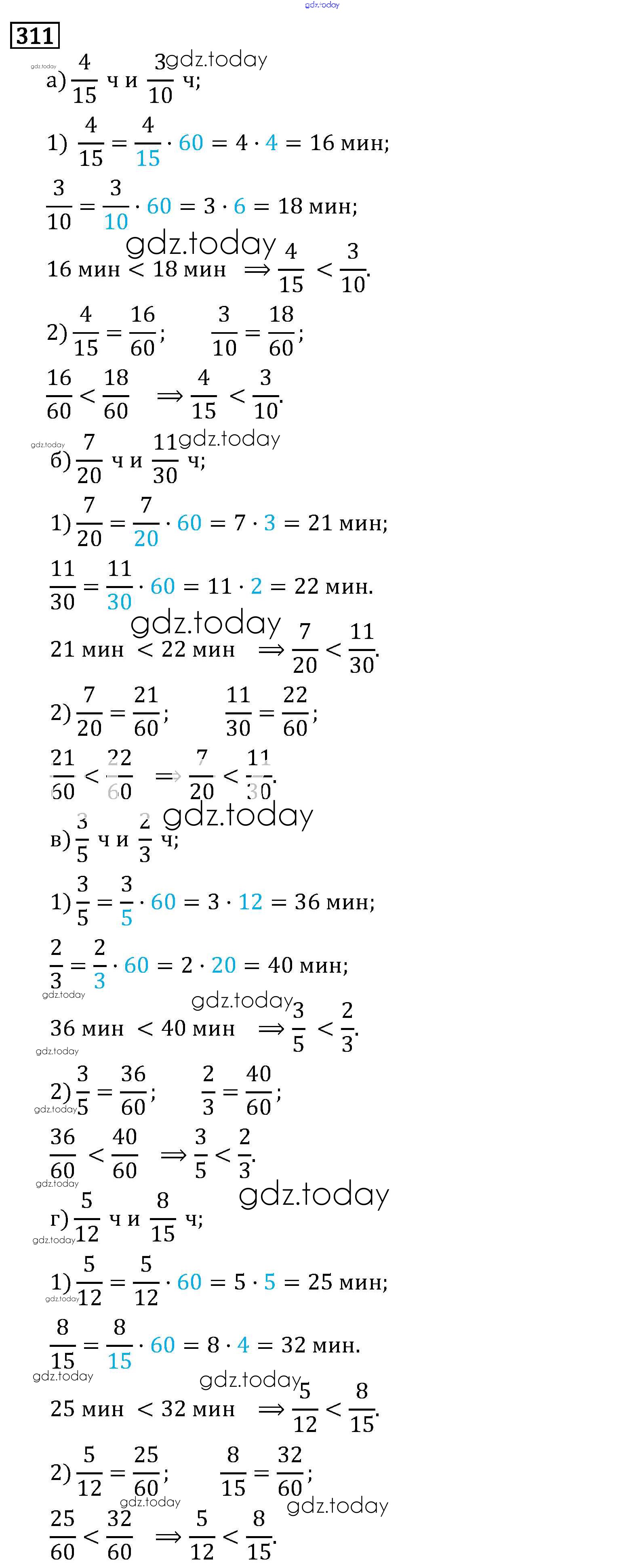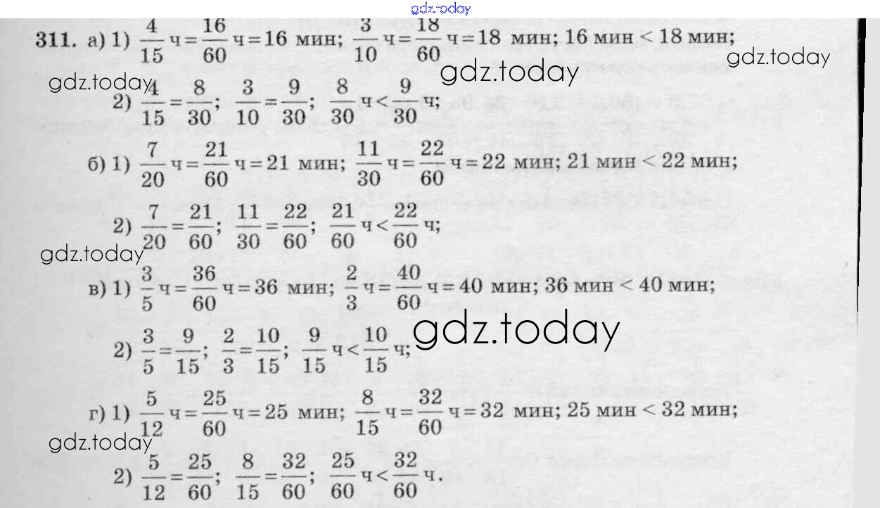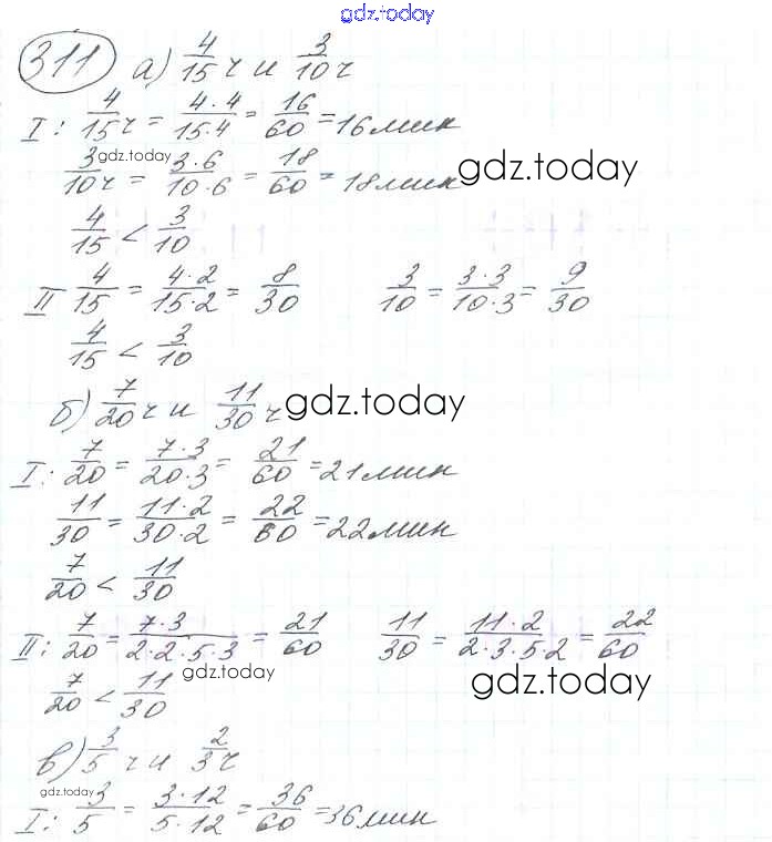 Ответы к §2. Сложение и вычитание дробей с разными знаменателями Решение к главе 1 311 Учебнику по Математике для 6 класса Виленкин, Жохов Мнемозина 2014