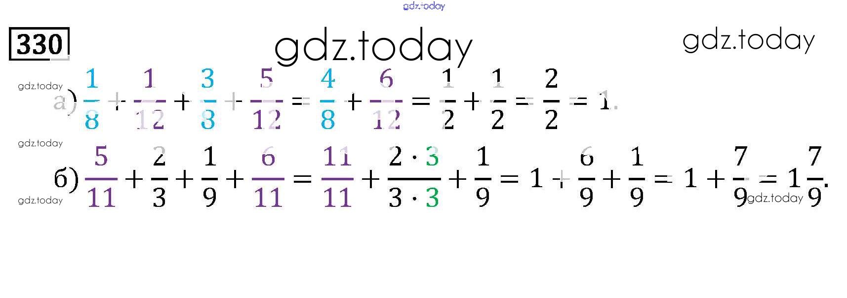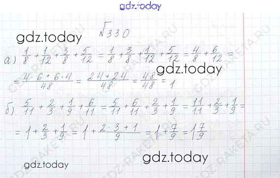 Ответы к §2. Сложение и вычитание дробей с разными знаменателями Решение к главе 1 330 Учебнику по Математике для 6 класса Виленкин, Жохов Мнемозина 2014