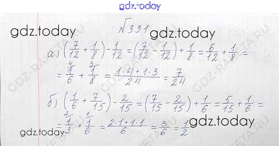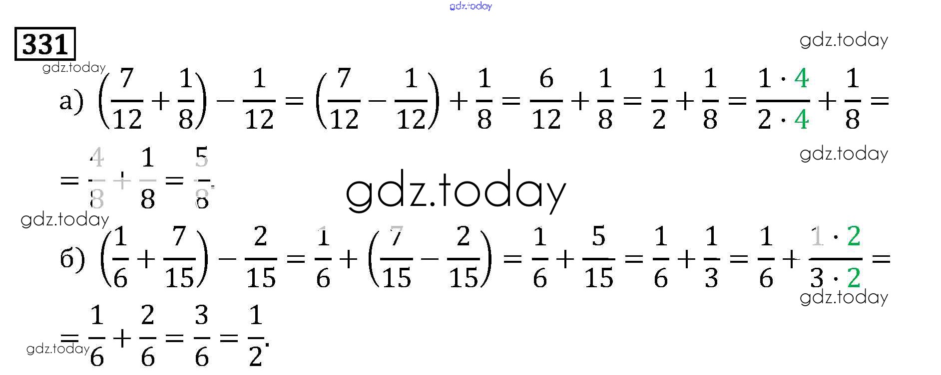 На страницах сайта gdz.today вы найдете учебный и вспомогательный материал, направленный на улучшения знаний школьной программы. ГДЗ - онлайн мир знаний §2. Сложение и вычитание дробей с разными знаменателями Решение к главе 1 331 Учебнику по Математике для 6 класса Виленкин, Жохов Мнемозина 2014
