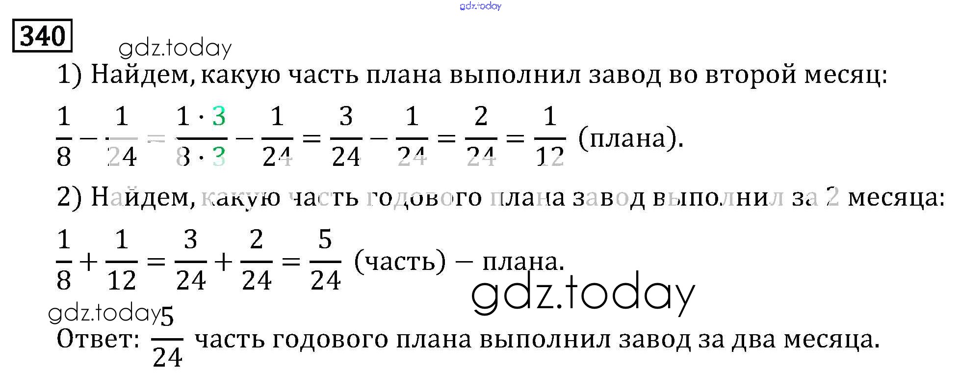 Ответы к §2. Сложение и вычитание дробей с разными знаменателями Решение к главе 1 340 Учебнику по Математике для 6 класса Виленкин, Жохов Мнемозина 2014