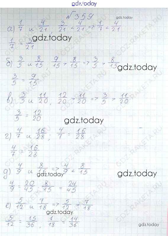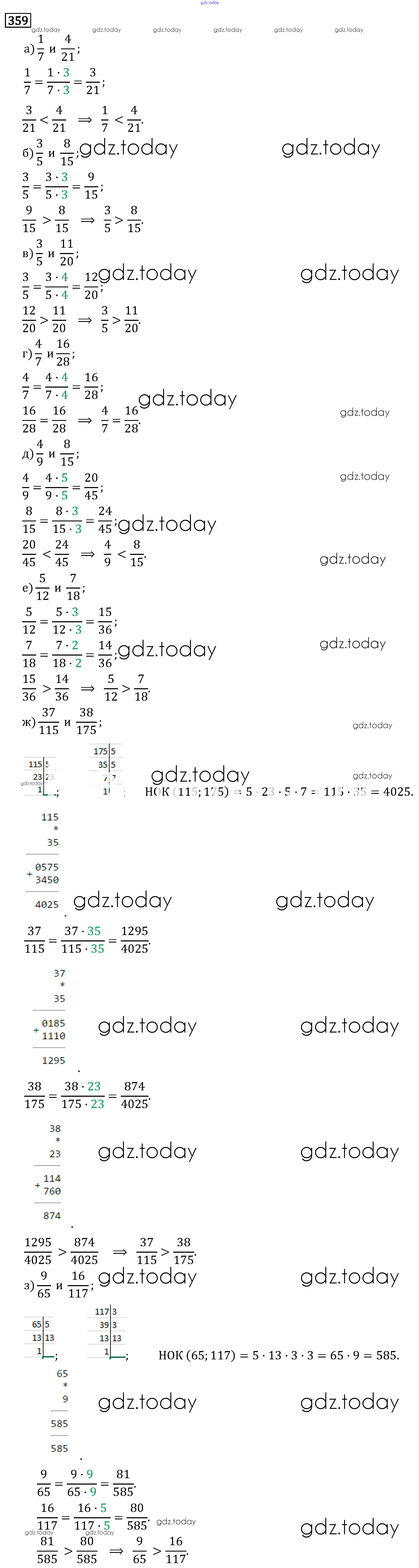 На страницах сайта gdz.today вы найдете учебный и вспомогательный материал, направленный на улучшения знаний школьной программы. ГДЗ - онлайн мир знаний §2. Сложение и вычитание дробей с разными знаменателями Решение к главе 1 359 Учебнику по Математике для 6 класса Виленкин, Жохов Мнемозина 2014