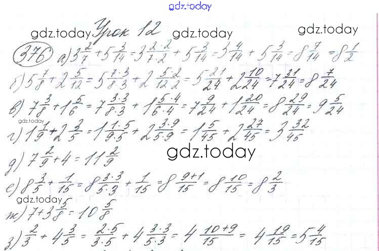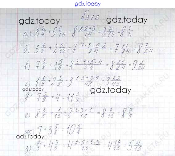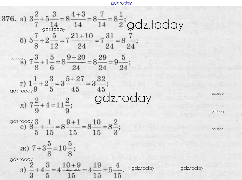 На страницах сайта gdz.today вы найдете учебный и вспомогательный материал, направленный на улучшения знаний школьной программы. ГДЗ - онлайн мир знаний §2. Сложение и вычитание дробей с разными знаменателями Решение к главе 1 376 Учебнику по Математике для 6 класса Виленкин, Жохов Мнемозина 2014