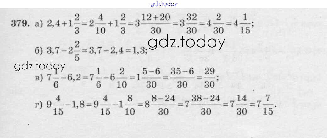 Ответы к §2. Сложение и вычитание дробей с разными знаменателями Решение к главе 1 379 Учебнику по Математике для 6 класса Виленкин, Жохов Мнемозина 2014