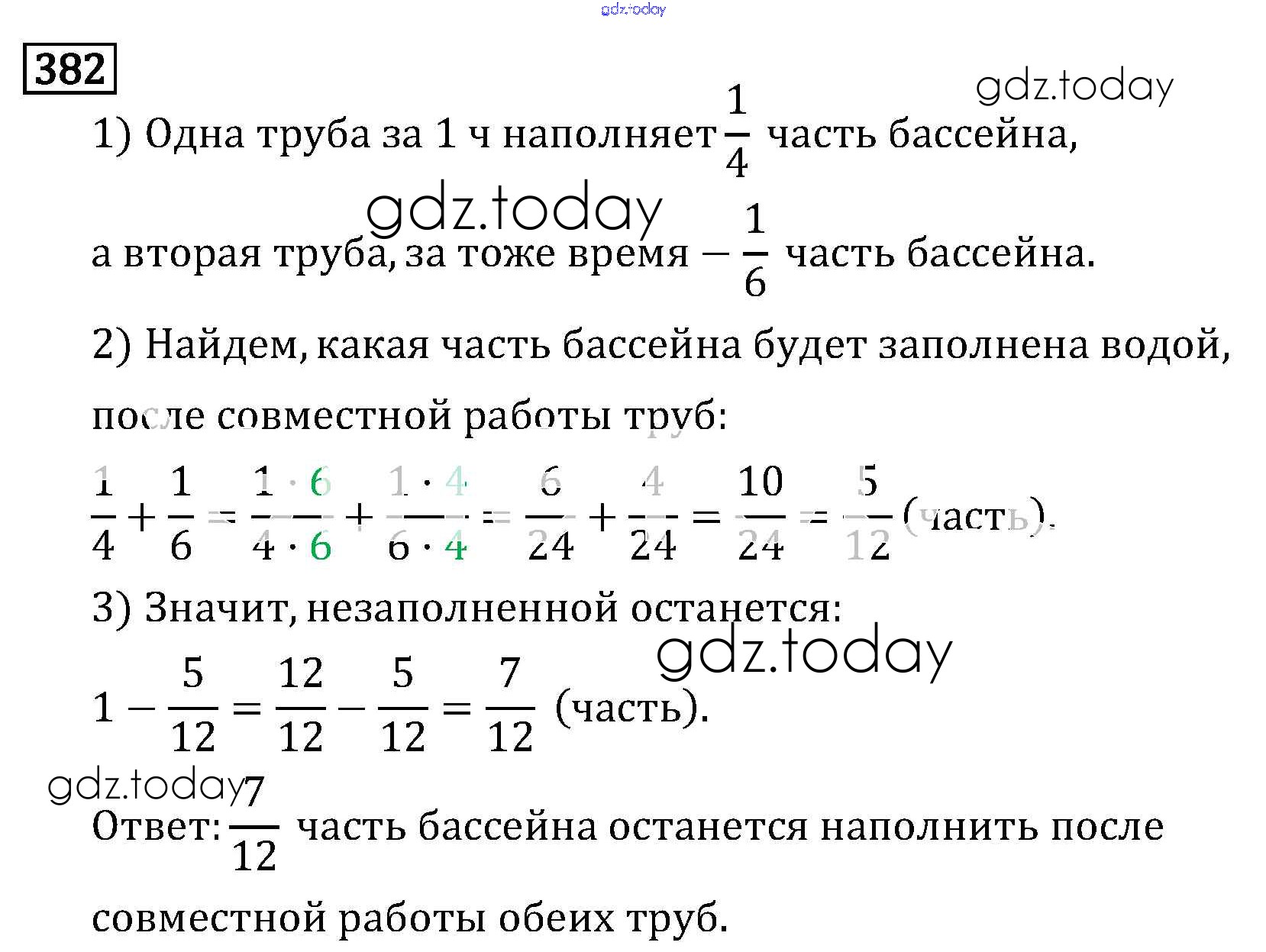 Ответы к §2. Сложение и вычитание дробей с разными знаменателями Решение к главе 1 382 Учебнику по Математике для 6 класса Виленкин, Жохов Мнемозина 2014