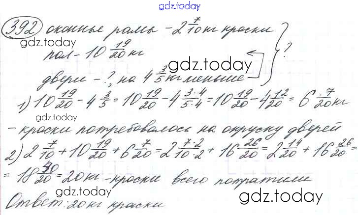 На страницах сайта gdz.today вы найдете учебный и вспомогательный материал, направленный на улучшения знаний школьной программы. ГДЗ - онлайн мир знаний §2. Сложение и вычитание дробей с разными знаменателями Решение к главе 1 392 Учебнику по Математике для 6 класса Виленкин, Жохов Мнемозина 2014