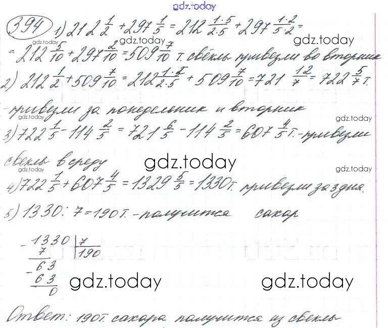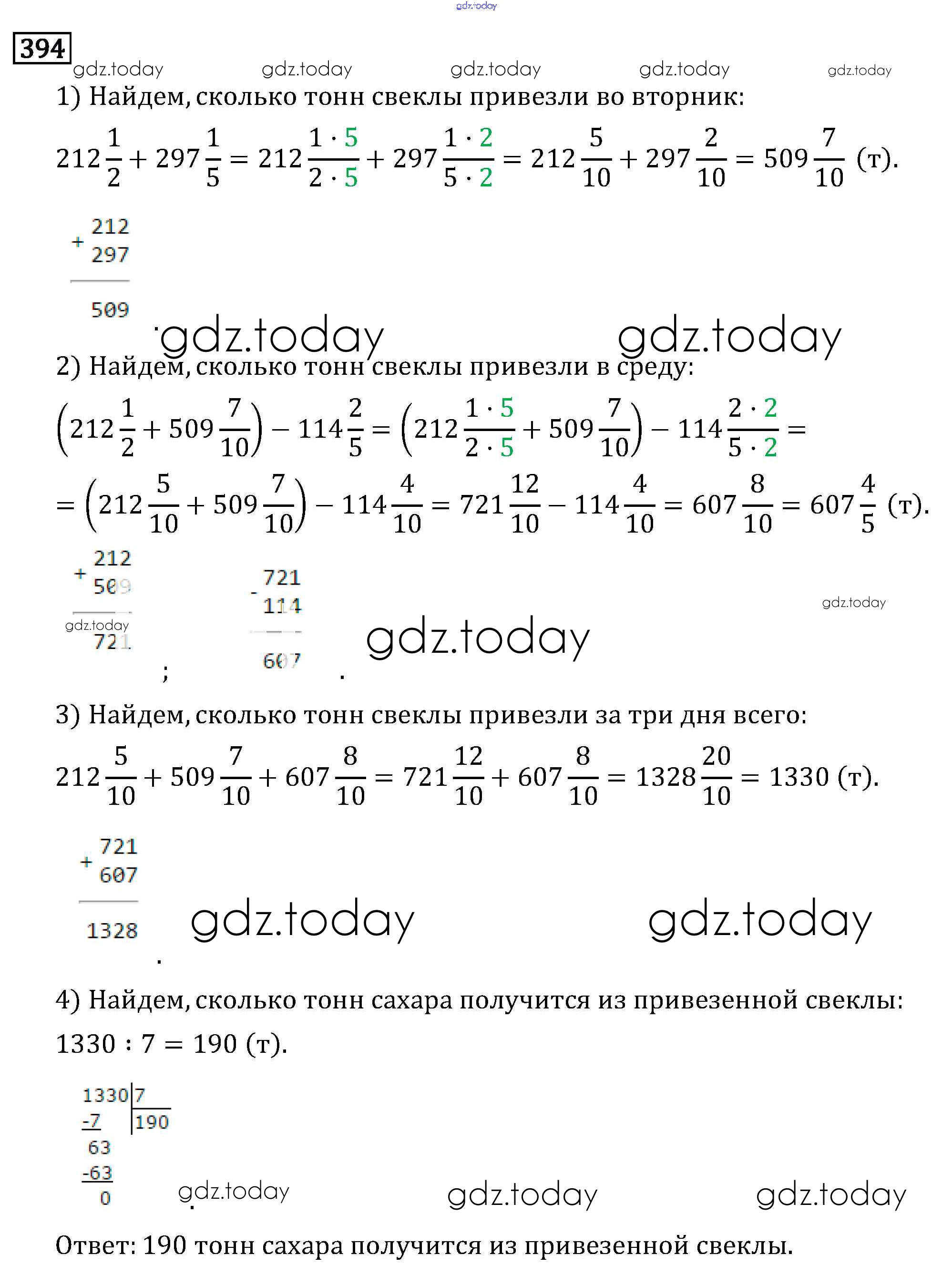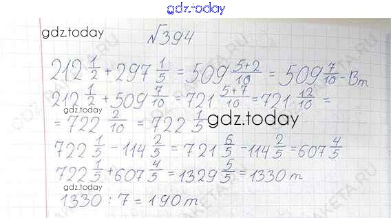 Ответы к §2. Сложение и вычитание дробей с разными знаменателями Решение к главе 1 394 Учебнику по Математике для 6 класса Виленкин, Жохов Мнемозина 2014