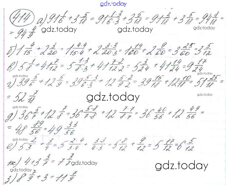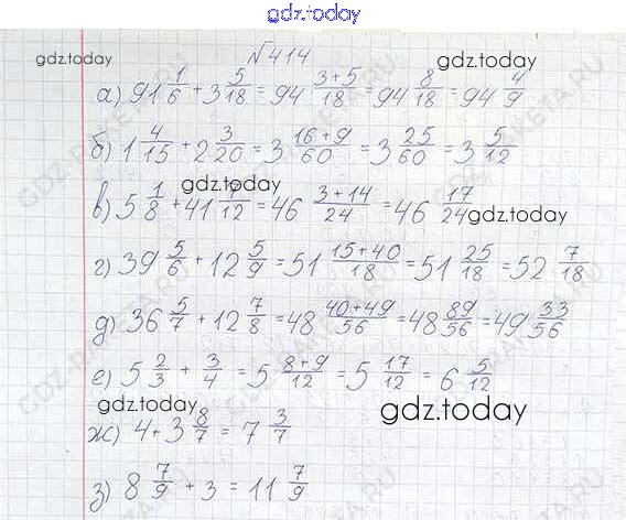 На страницах сайта gdz.today вы найдете учебный и вспомогательный материал, направленный на улучшения знаний школьной программы. ГДЗ - онлайн мир знаний §2. Сложение и вычитание дробей с разными знаменателями Решение к главе 1 414 Учебнику по Математике для 6 класса Виленкин, Жохов Мнемозина 2014