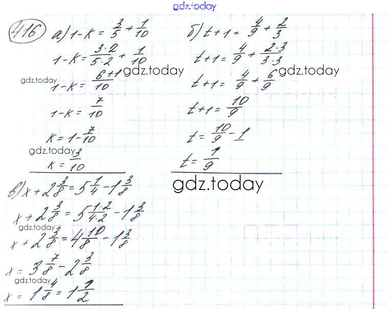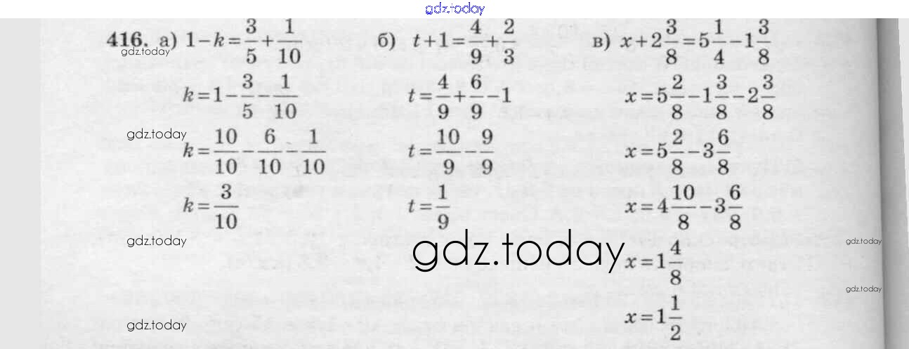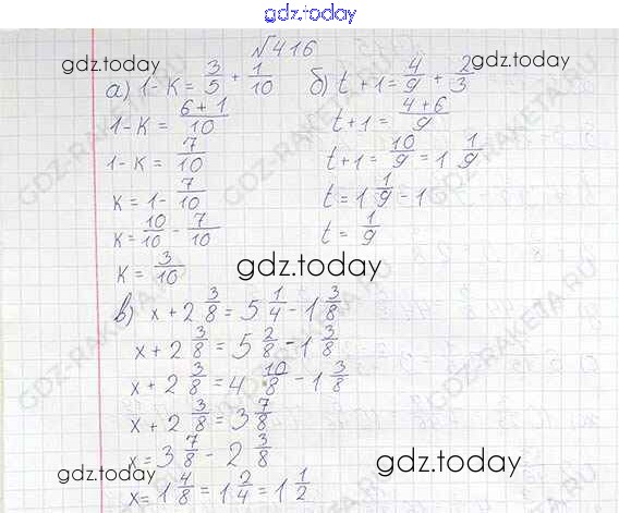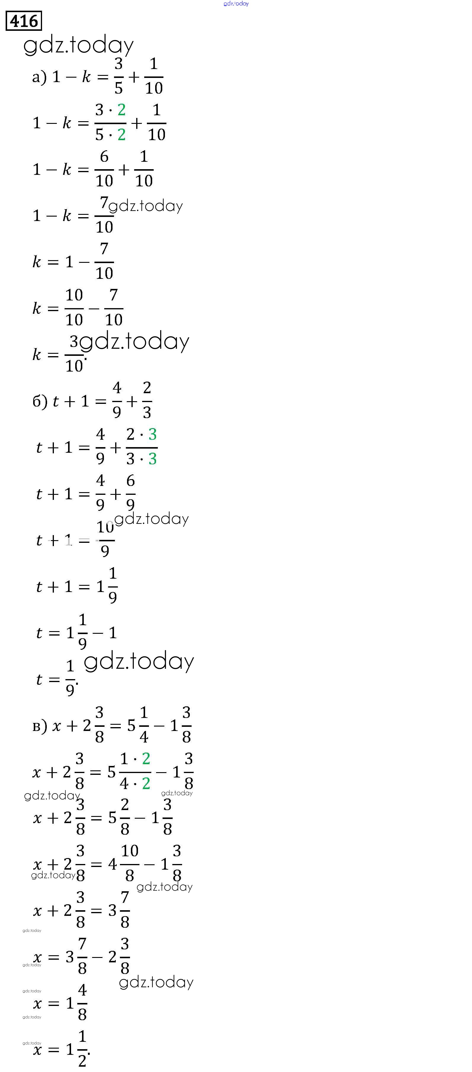 На страницах сайта gdz.today вы найдете учебный и вспомогательный материал, направленный на улучшения знаний школьной программы. ГДЗ - онлайн мир знаний §2. Сложение и вычитание дробей с разными знаменателями Решение к главе 1 416 Учебнику по Математике для 6 класса Виленкин, Жохов Мнемозина 2014