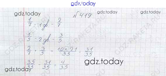 На страницах сайта gdz.today вы найдете учебный и вспомогательный материал, направленный на улучшения знаний школьной программы. ГДЗ - онлайн мир знаний §2. Сложение и вычитание дробей с разными знаменателями Решение к главе 1 419 Учебнику по Математике для 6 класса Виленкин, Жохов Мнемозина 2014
