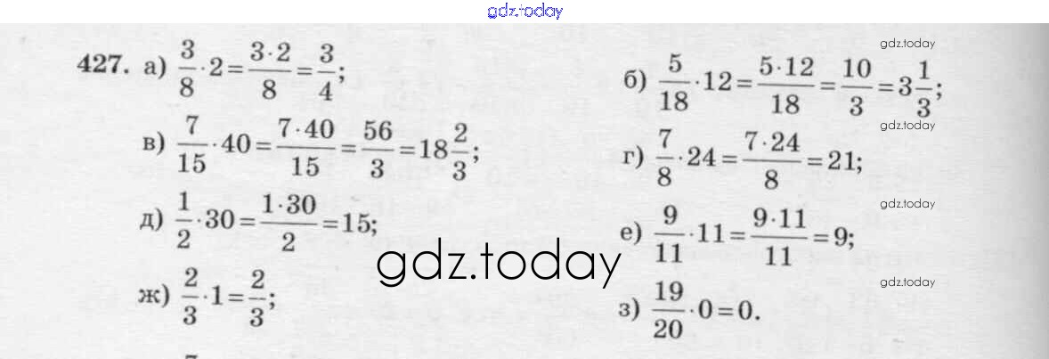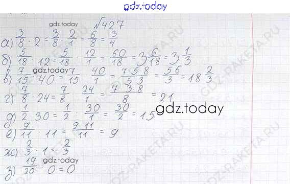 Ответы к §3. Умножение и деление обыкновенных дробей Решение к главе 1 427 Учебнику по Математике для 6 класса Виленкин, Жохов Мнемозина 2014