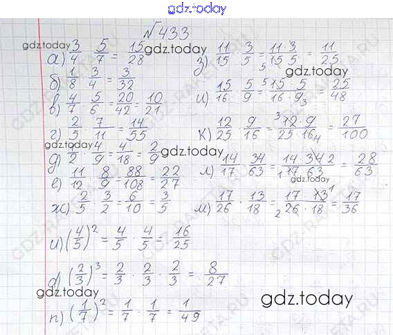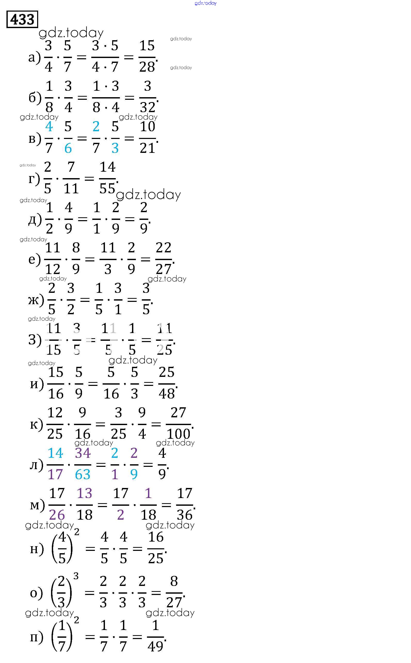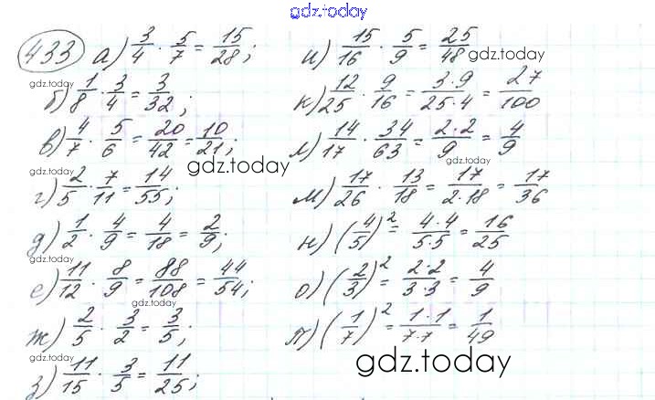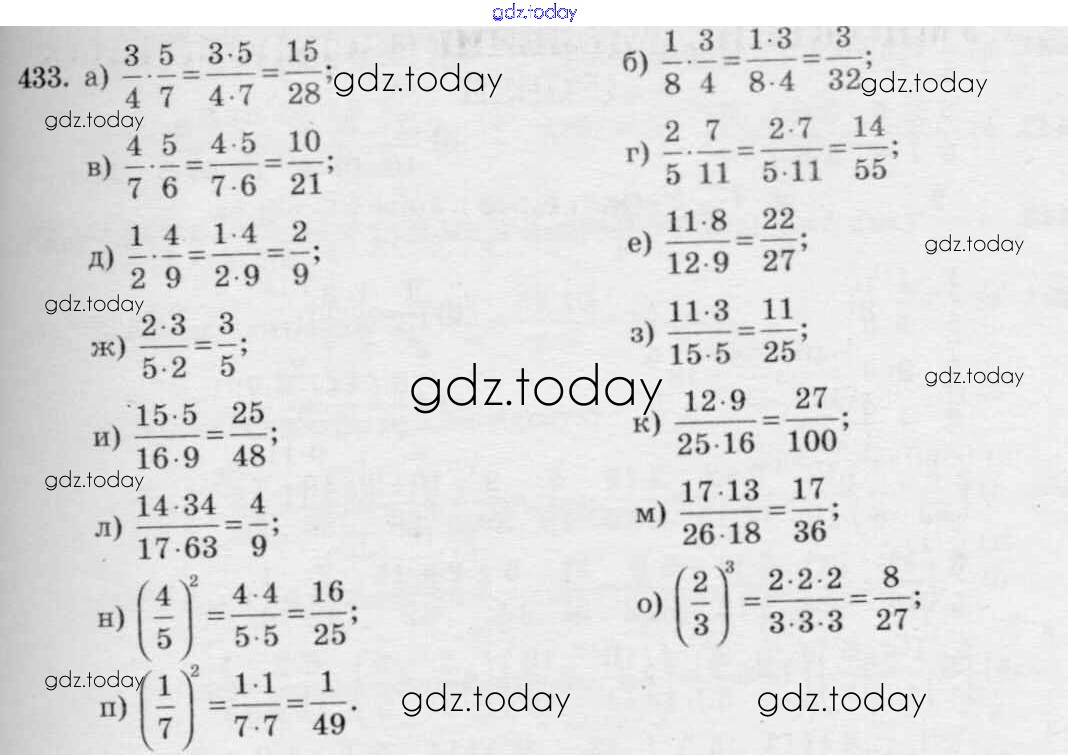 На страницах сайта gdz.today вы найдете учебный и вспомогательный материал, направленный на улучшения знаний школьной программы. ГДЗ - онлайн мир знаний §3. Умножение и деление обыкновенных дробей Решение к главе 1 433 Учебнику по Математике для 6 класса Виленкин, Жохов Мнемозина 2014