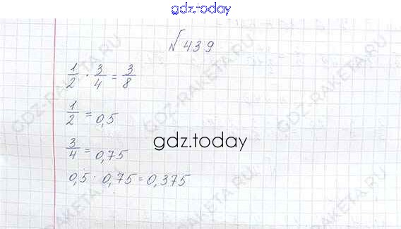 На страницах сайта gdz.today вы найдете учебный и вспомогательный материал, направленный на улучшения знаний школьной программы. ГДЗ - онлайн мир знаний §3. Умножение и деление обыкновенных дробей Решение к главе 1 439 Учебнику по Математике для 6 класса Виленкин, Жохов Мнемозина 2014