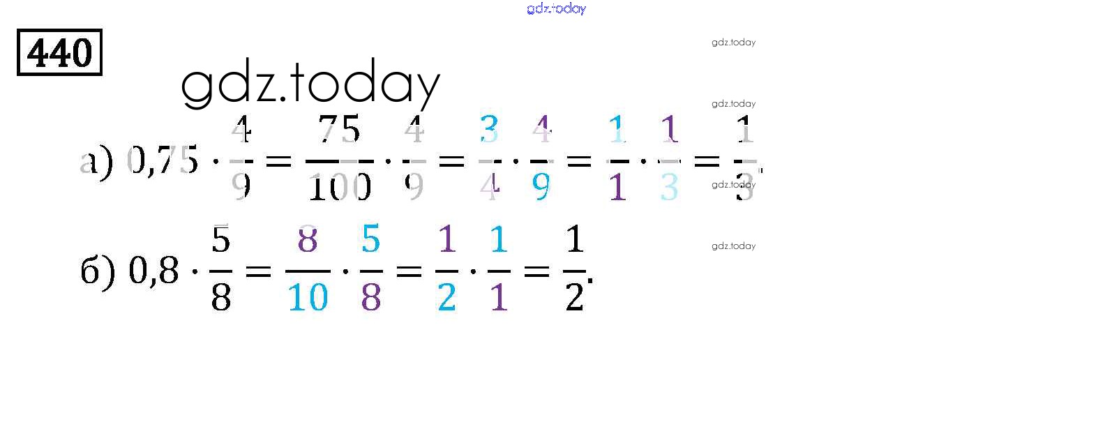 На страницах сайта gdz.today вы найдете учебный и вспомогательный материал, направленный на улучшения знаний школьной программы. ГДЗ - онлайн мир знаний §3. Умножение и деление обыкновенных дробей Решение к главе 1 440 Учебнику по Математике для 6 класса Виленкин, Жохов Мнемозина 2014