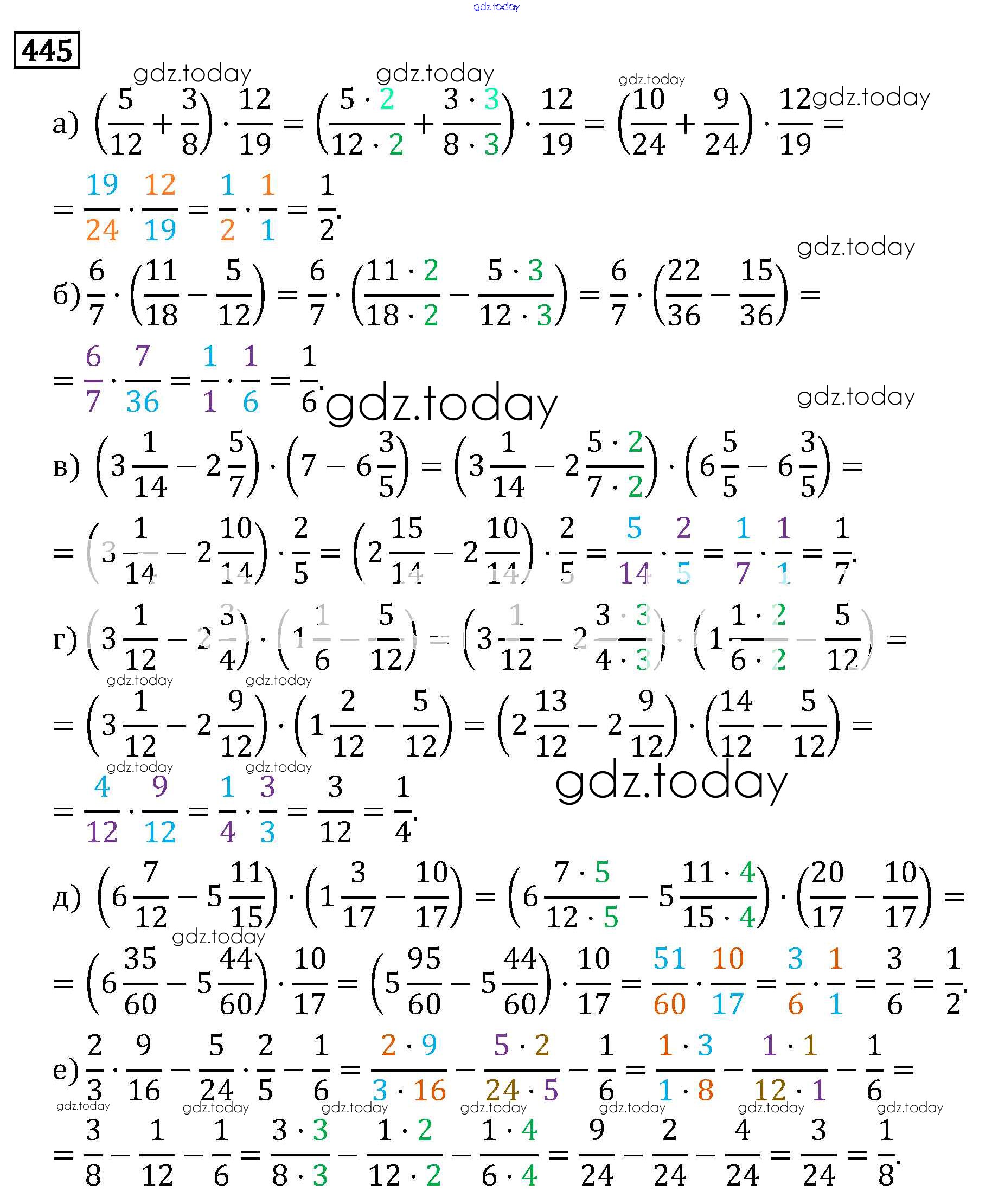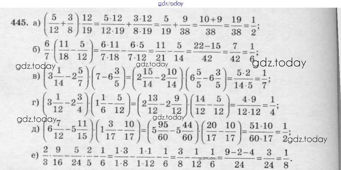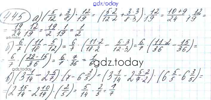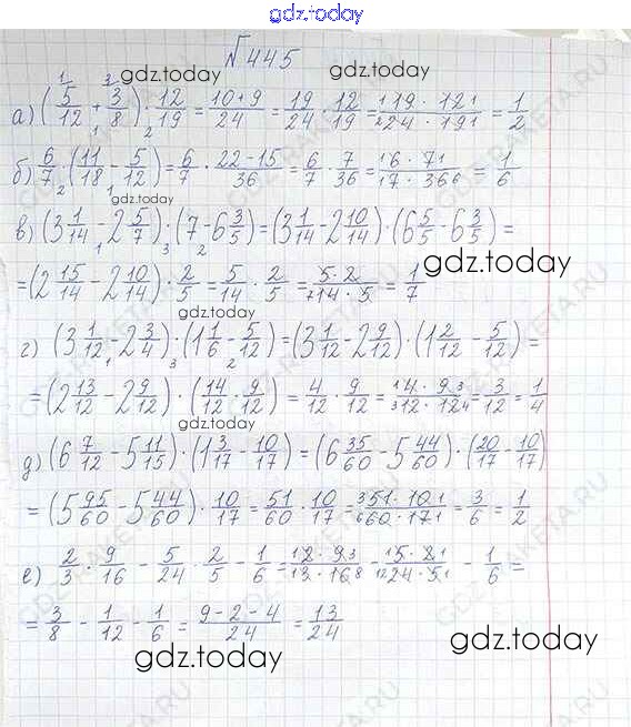 На страницах сайта gdz.today вы найдете учебный и вспомогательный материал, направленный на улучшения знаний школьной программы. ГДЗ - онлайн мир знаний §3. Умножение и деление обыкновенных дробей Решение к главе 1 445 Учебнику по Математике для 6 класса Виленкин, Жохов Мнемозина 2014
