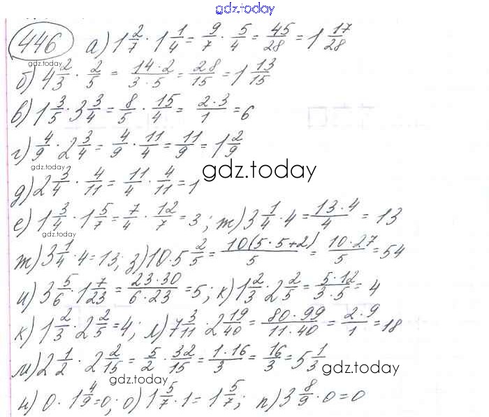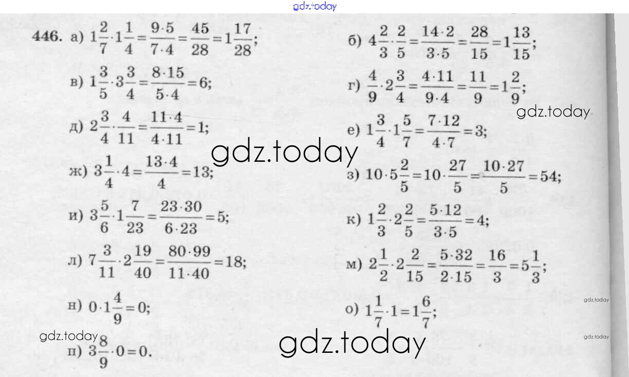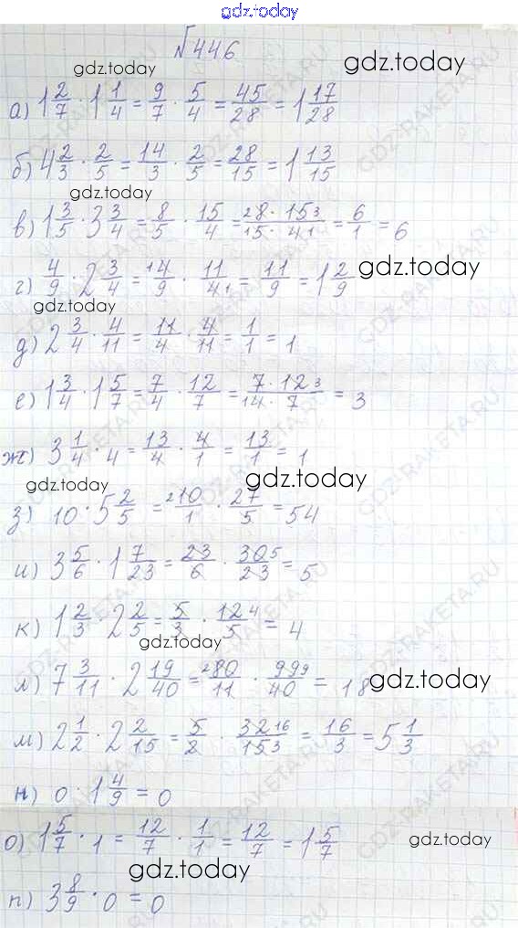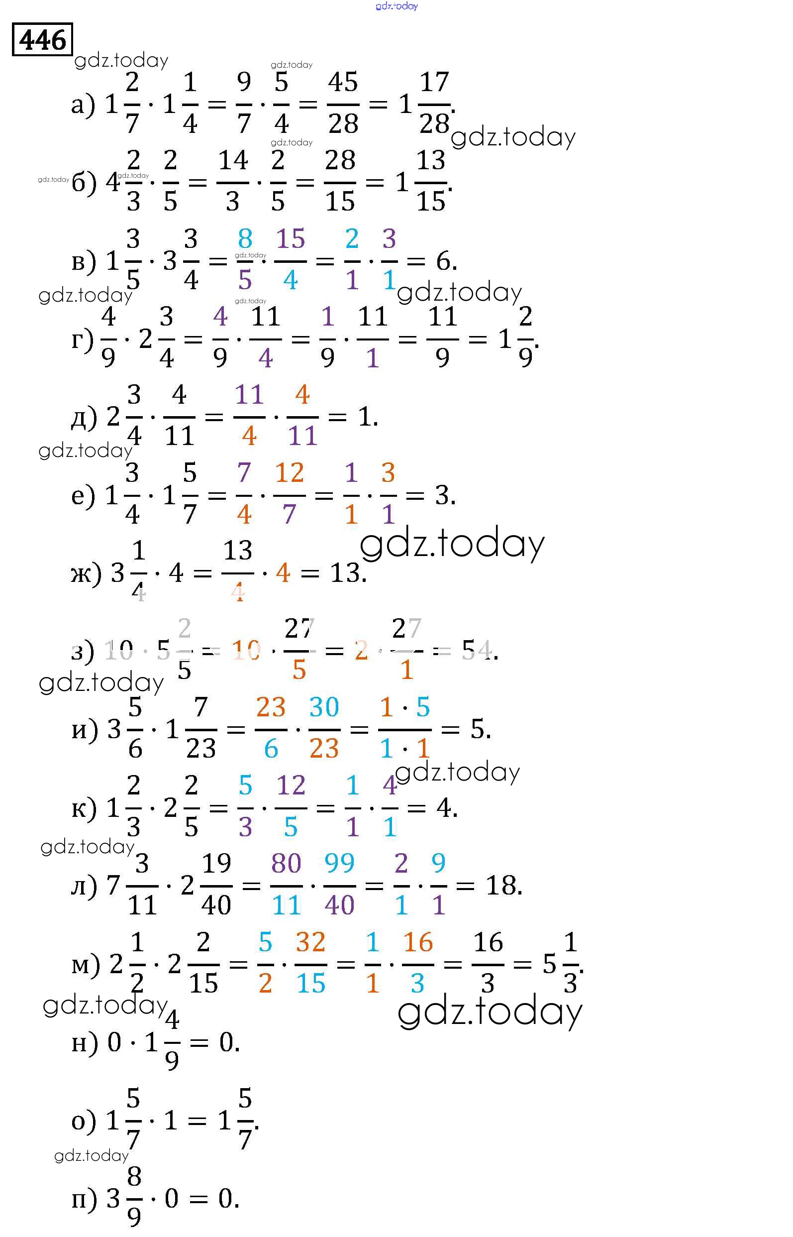 На страницах сайта gdz.today вы найдете учебный и вспомогательный материал, направленный на улучшения знаний школьной программы. ГДЗ - онлайн мир знаний §3. Умножение и деление обыкновенных дробей Решение к главе 1 446 Учебнику по Математике для 6 класса Виленкин, Жохов Мнемозина 2014