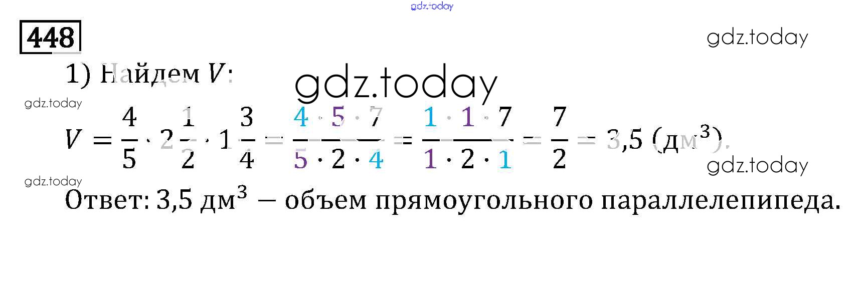На страницах сайта gdz.today вы найдете учебный и вспомогательный материал, направленный на улучшения знаний школьной программы. ГДЗ - онлайн мир знаний §3. Умножение и деление обыкновенных дробей Решение к главе 1 448 Учебнику по Математике для 6 класса Виленкин, Жохов Мнемозина 2014