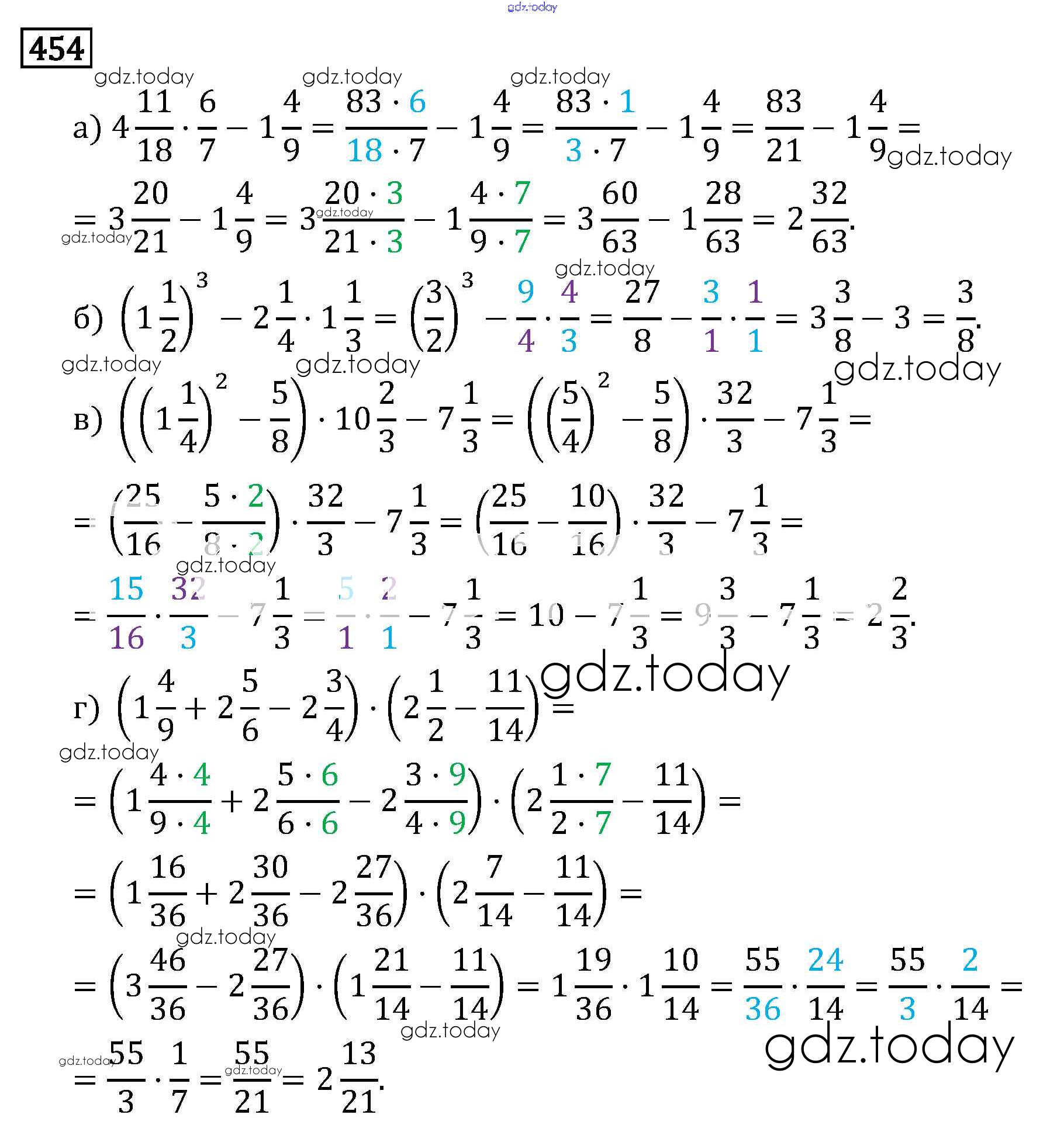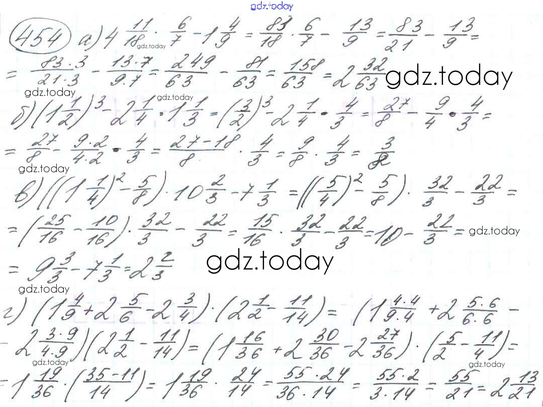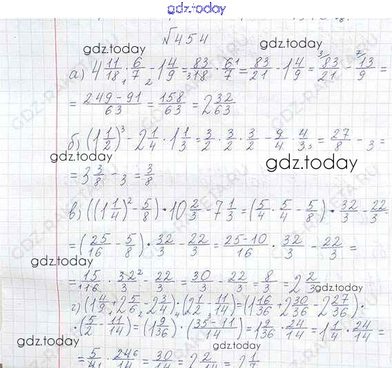 На страницах сайта gdz.today вы найдете учебный и вспомогательный материал, направленный на улучшения знаний школьной программы. ГДЗ - онлайн мир знаний §3. Умножение и деление обыкновенных дробей Решение к главе 1 454 Учебнику по Математике для 6 класса Виленкин, Жохов Мнемозина 2014