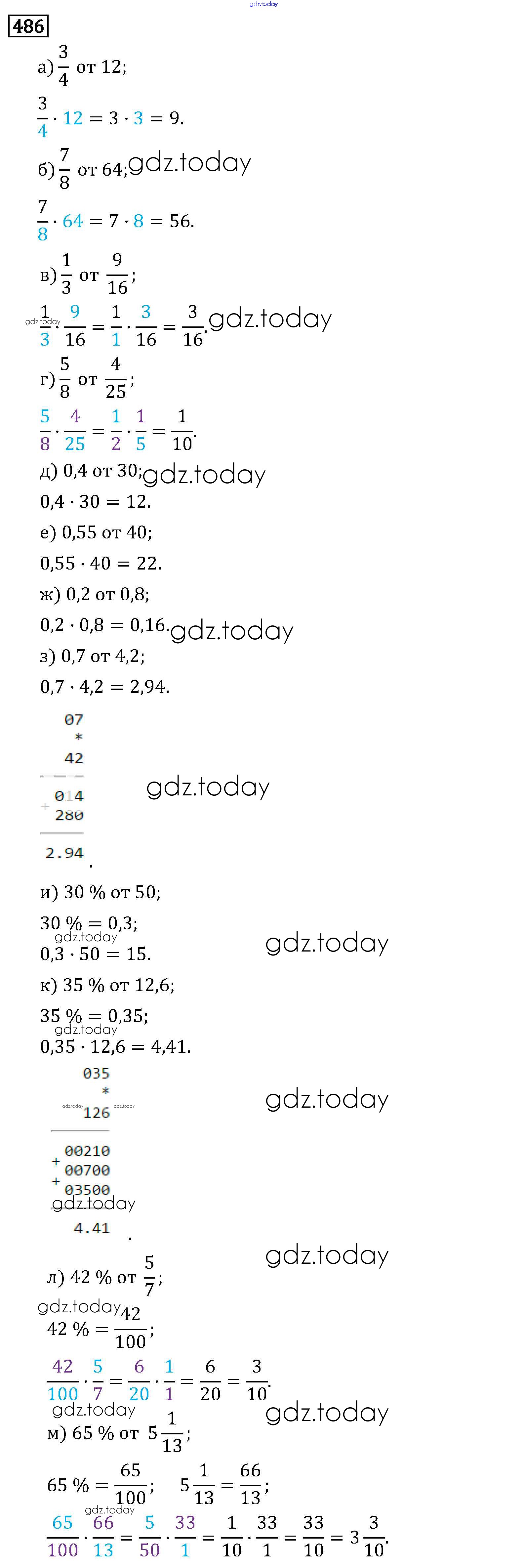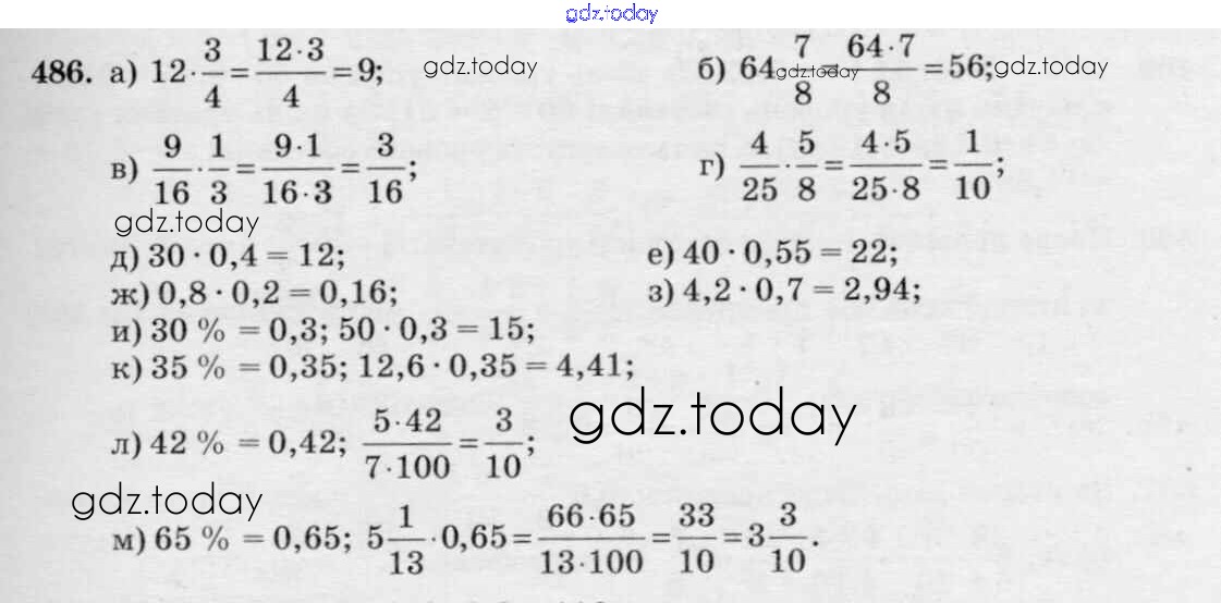 На страницах сайта gdz.today вы найдете учебный и вспомогательный материал, направленный на улучшения знаний школьной программы. ГДЗ - онлайн мир знаний §3. Умножение и деление обыкновенных дробей Решение к главе 1 486 Учебнику по Математике для 6 класса Виленкин, Жохов Мнемозина 2014