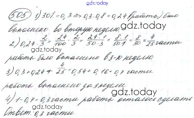 Ответы к §3. Умножение и деление обыкновенных дробей Решение к главе 1 505 Учебнику по Математике для 6 класса Виленкин, Жохов Мнемозина 2014