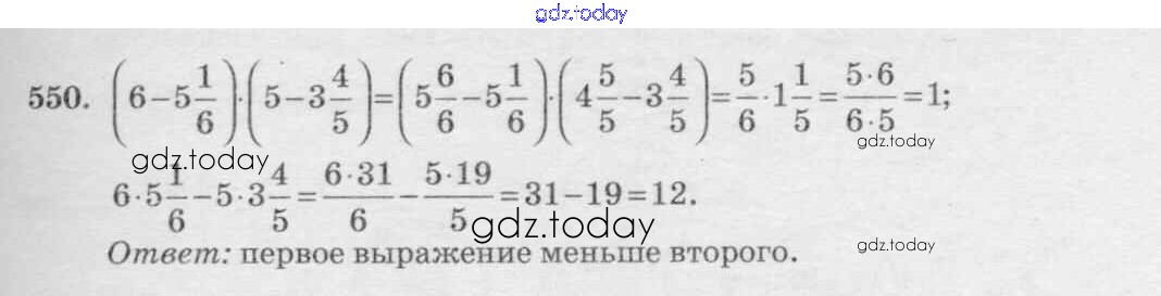 Ответы к §3. Умножение и деление обыкновенных дробей Решение к главе 1 550 Учебнику по Математике для 6 класса Виленкин, Жохов Мнемозина 2014