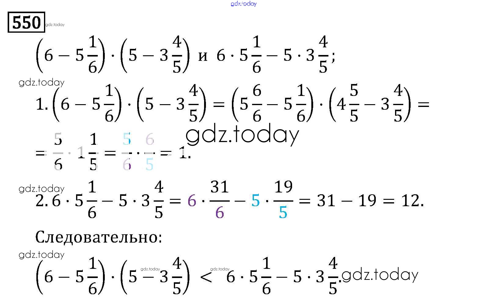 На страницах сайта gdz.today вы найдете учебный и вспомогательный материал, направленный на улучшения знаний школьной программы. ГДЗ - онлайн мир знаний §3. Умножение и деление обыкновенных дробей Решение к главе 1 550 Учебнику по Математике для 6 класса Виленкин, Жохов Мнемозина 2014