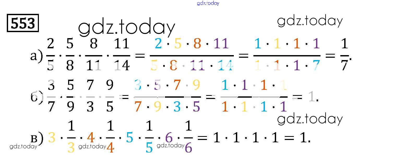 Ответы к §3. Умножение и деление обыкновенных дробей Решение к главе 1 553 Учебнику по Математике для 6 класса Виленкин, Жохов Мнемозина 2014