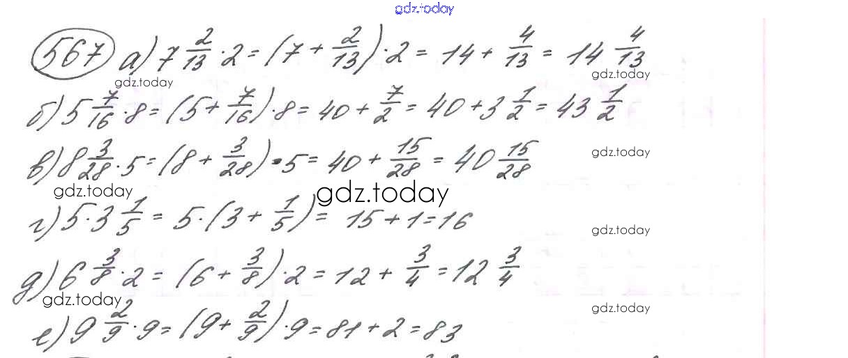На страницах сайта gdz.today вы найдете учебный и вспомогательный материал, направленный на улучшения знаний школьной программы. ГДЗ - онлайн мир знаний §3. Умножение и деление обыкновенных дробей Решение к главе 1 567 Учебнику по Математике для 6 класса Виленкин, Жохов Мнемозина 2014