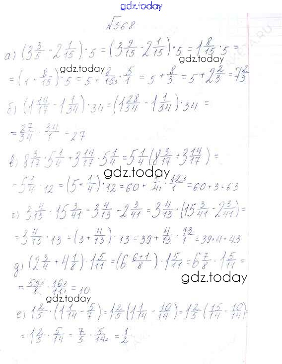 На страницах сайта gdz.today вы найдете учебный и вспомогательный материал, направленный на улучшения знаний школьной программы. ГДЗ - онлайн мир знаний §3. Умножение и деление обыкновенных дробей Решение к главе 1 568 Учебнику по Математике для 6 класса Виленкин, Жохов Мнемозина 2014