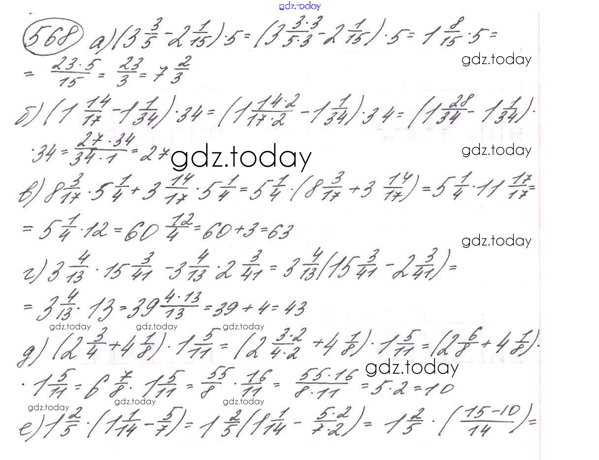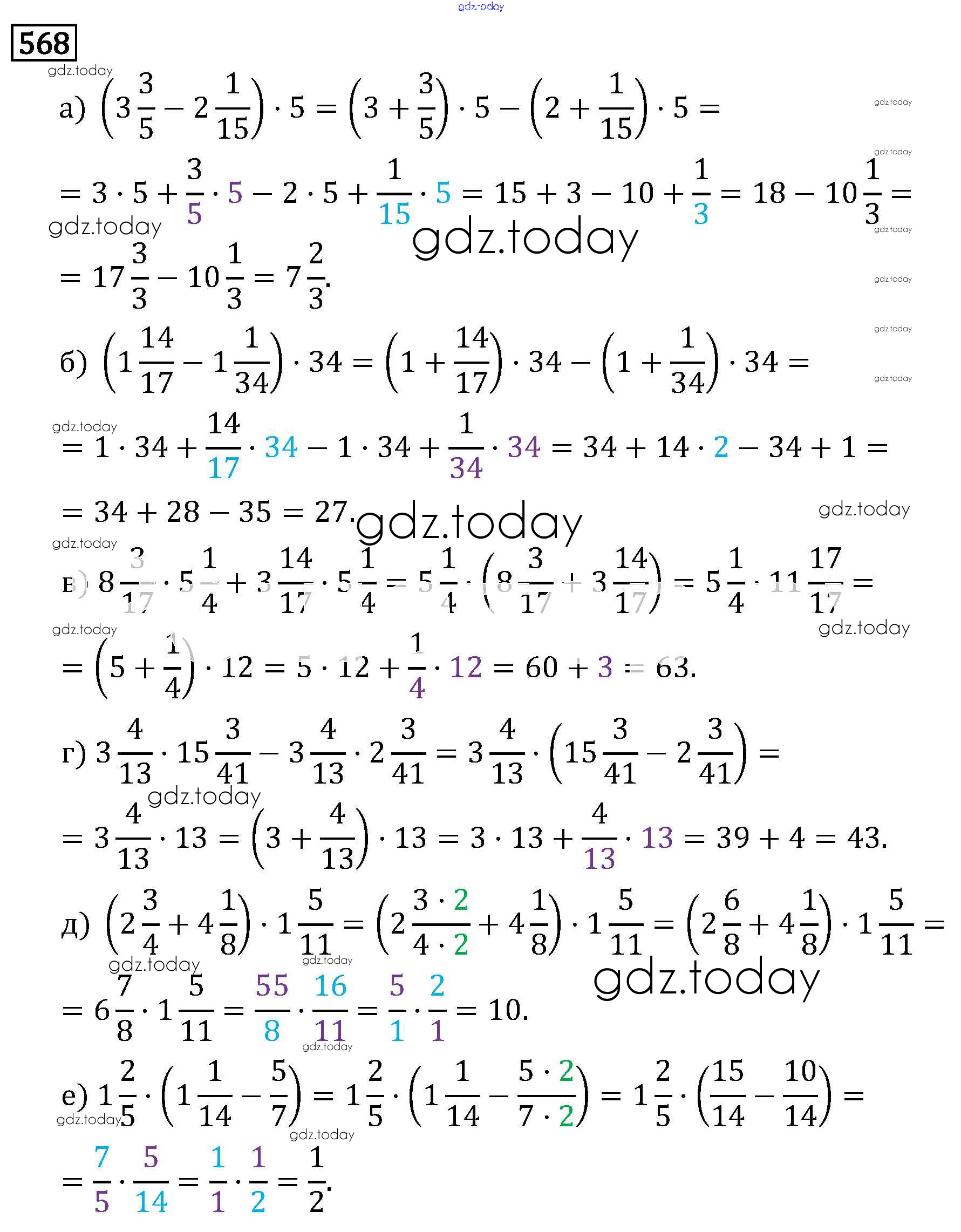 Ответы к §3. Умножение и деление обыкновенных дробей Решение к главе 1 568 Учебнику по Математике для 6 класса Виленкин, Жохов Мнемозина 2014