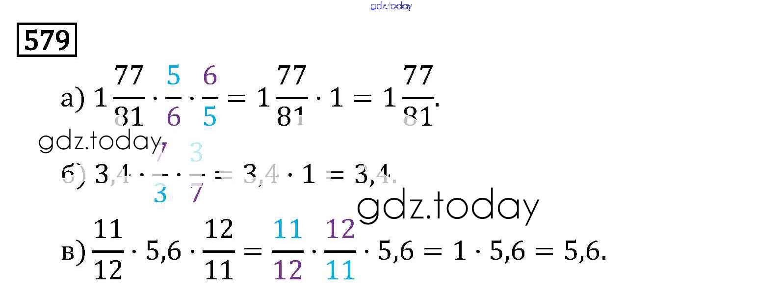 На страницах сайта gdz.today вы найдете учебный и вспомогательный материал, направленный на улучшения знаний школьной программы. ГДЗ - онлайн мир знаний §3. Умножение и деление обыкновенных дробей Решение к главе 1 579 Учебнику по Математике для 6 класса Виленкин, Жохов Мнемозина 2014