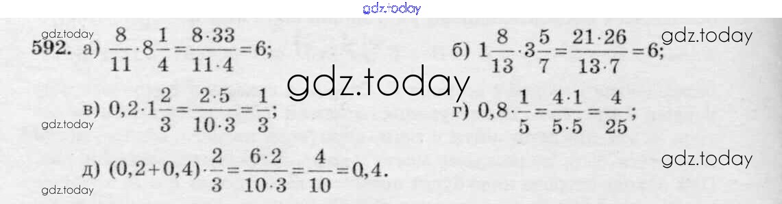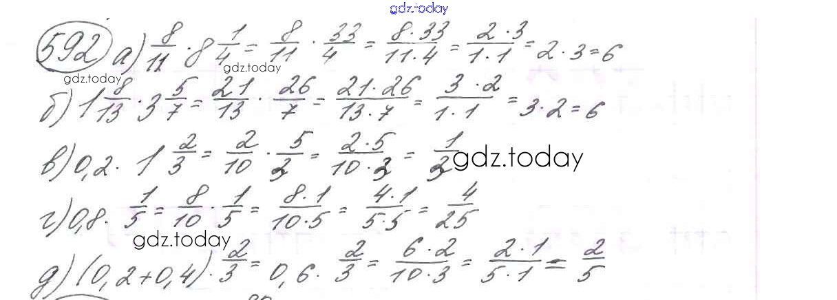 На страницах сайта gdz.today вы найдете учебный и вспомогательный материал, направленный на улучшения знаний школьной программы. ГДЗ - онлайн мир знаний §3. Умножение и деление обыкновенных дробей Решение к главе 1 592 Учебнику по Математике для 6 класса Виленкин, Жохов Мнемозина 2014