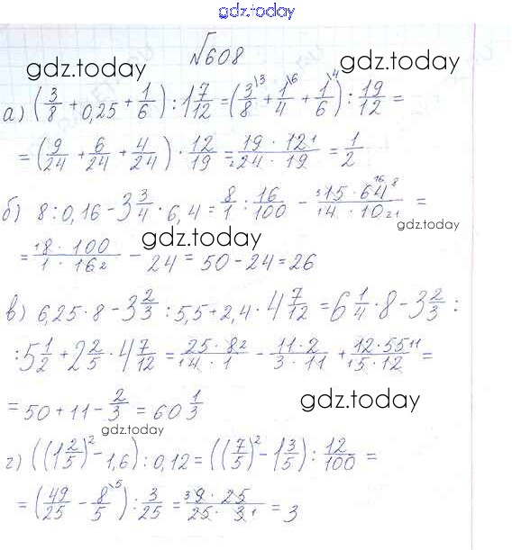 На страницах сайта gdz.today вы найдете учебный и вспомогательный материал, направленный на улучшения знаний школьной программы. ГДЗ - онлайн мир знаний §3. Умножение и деление обыкновенных дробей Решение к главе 1 608 Учебнику по Математике для 6 класса Виленкин, Жохов Мнемозина 2014