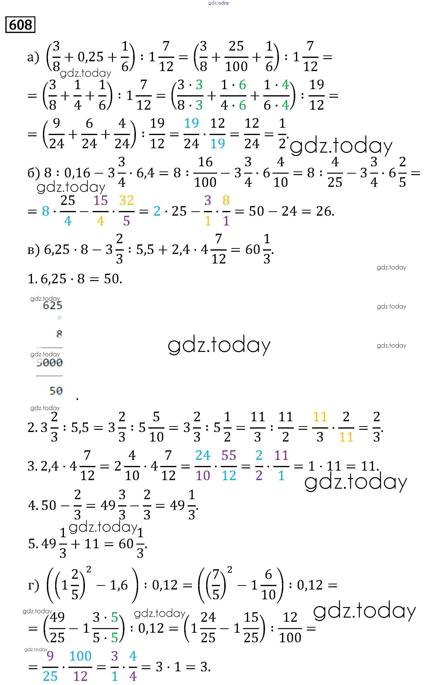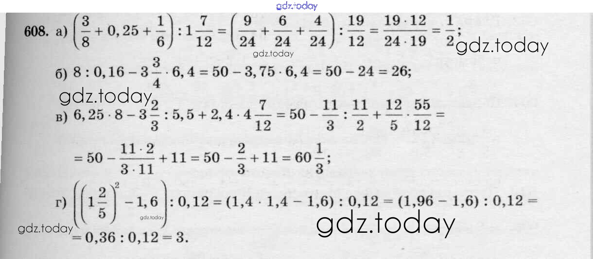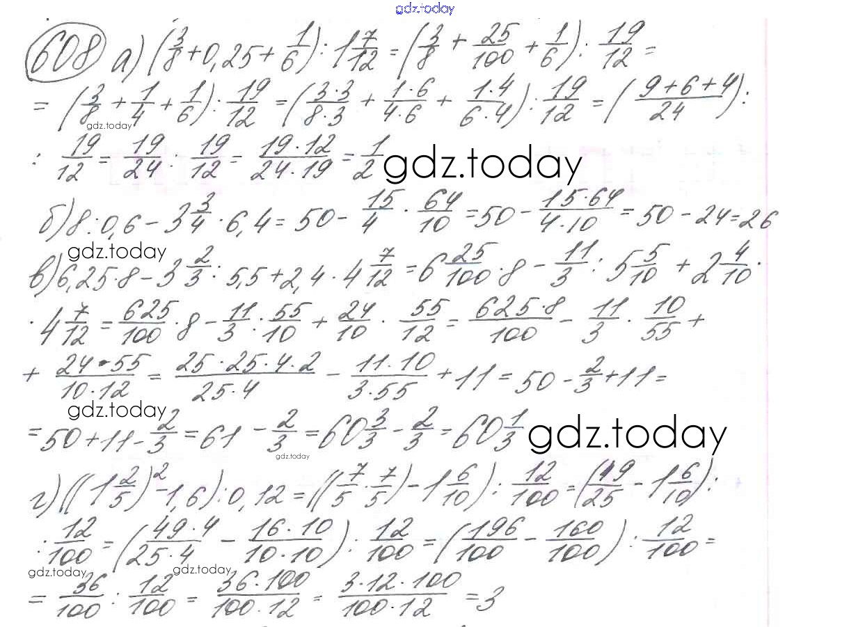 Ответы к §3. Умножение и деление обыкновенных дробей Решение к главе 1 608 Учебнику по Математике для 6 класса Виленкин, Жохов Мнемозина 2014