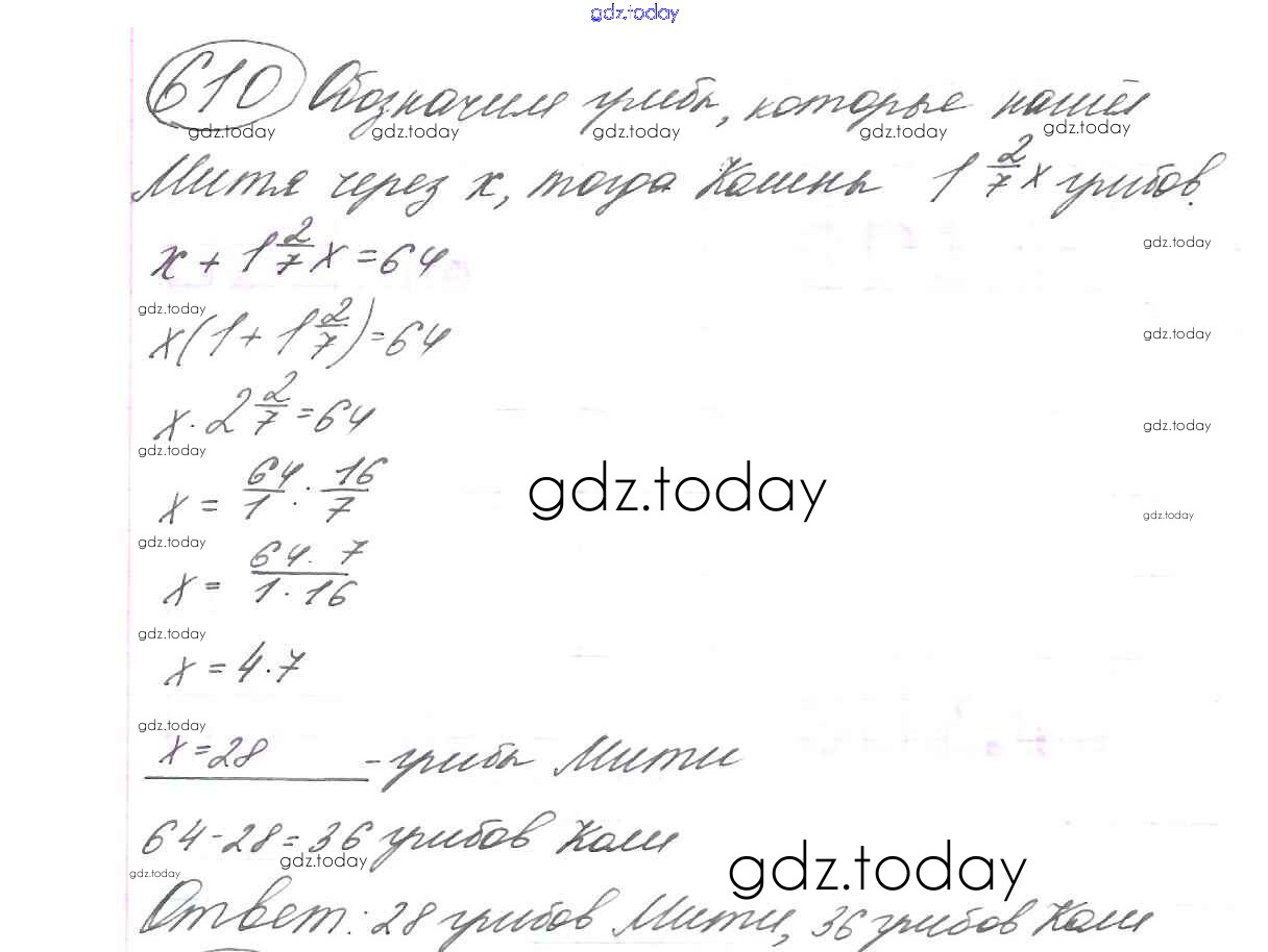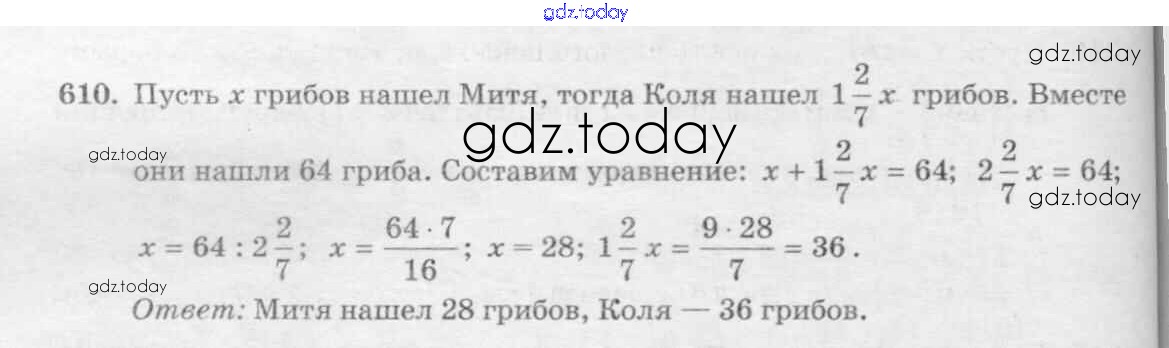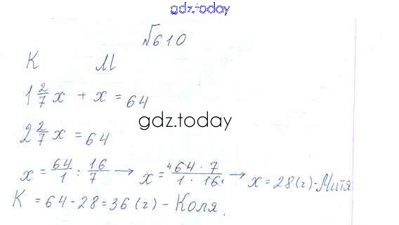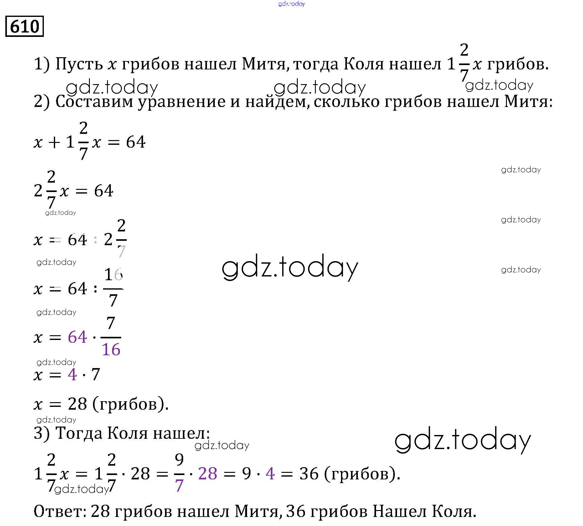 На страницах сайта gdz.today вы найдете учебный и вспомогательный материал, направленный на улучшения знаний школьной программы. ГДЗ - онлайн мир знаний §3. Умножение и деление обыкновенных дробей Решение к главе 1 610 Учебнику по Математике для 6 класса Виленкин, Жохов Мнемозина 2014
