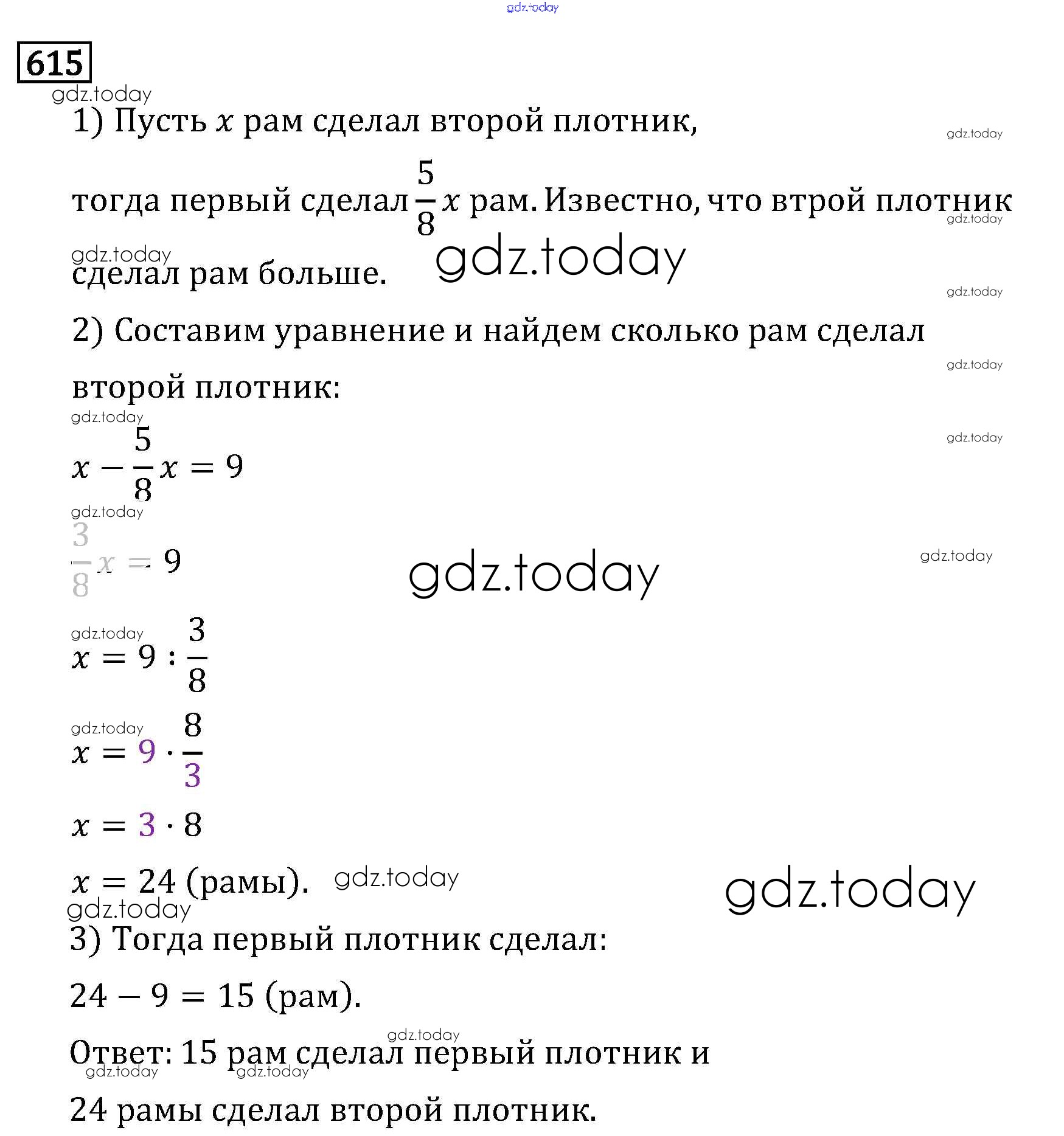 На страницах сайта gdz.today вы найдете учебный и вспомогательный материал, направленный на улучшения знаний школьной программы. ГДЗ - онлайн мир знаний §3. Умножение и деление обыкновенных дробей Решение к главе 1 615 Учебнику по Математике для 6 класса Виленкин, Жохов Мнемозина 2014